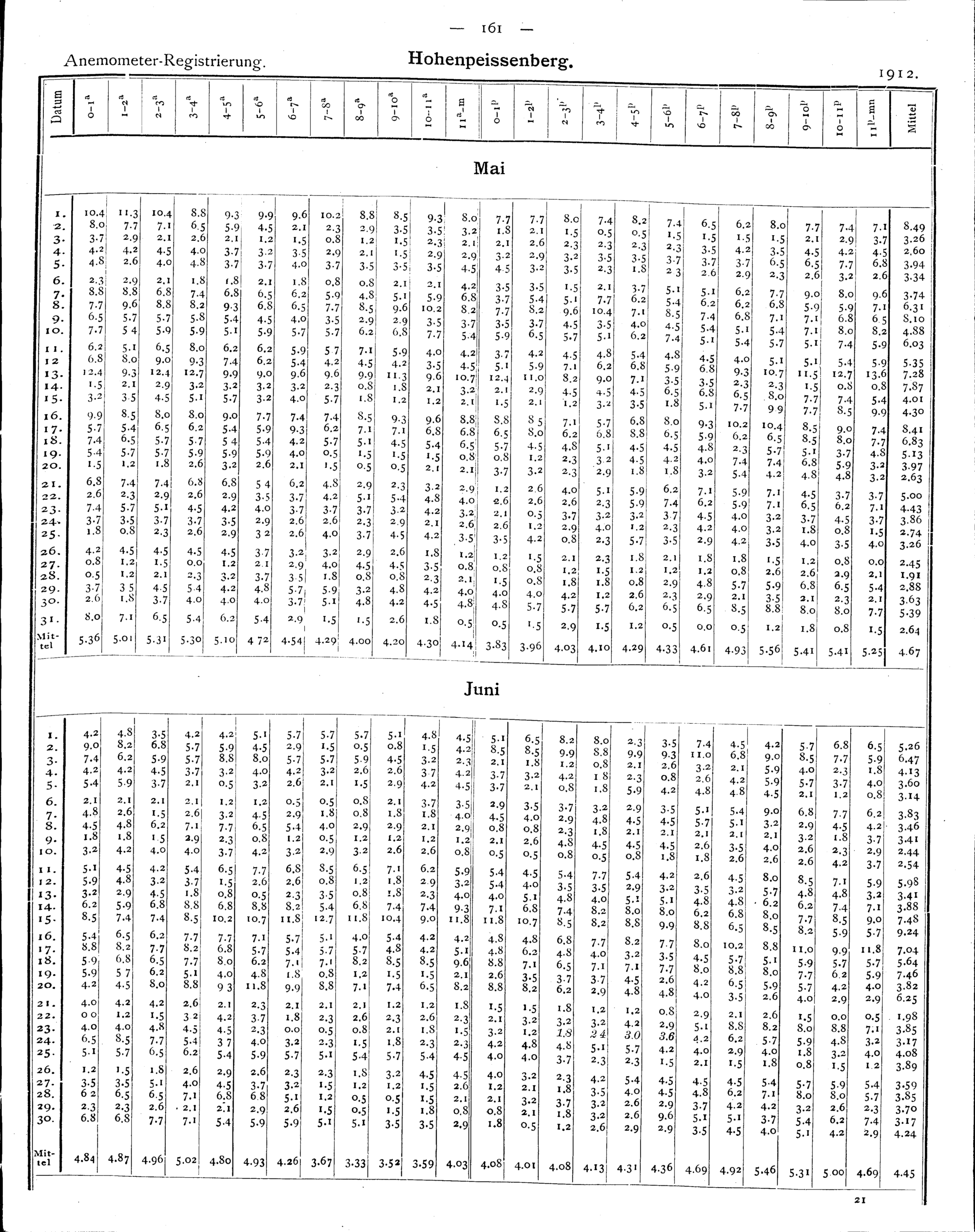 Auswertung der Registrierungen von Hohenpeissenberg