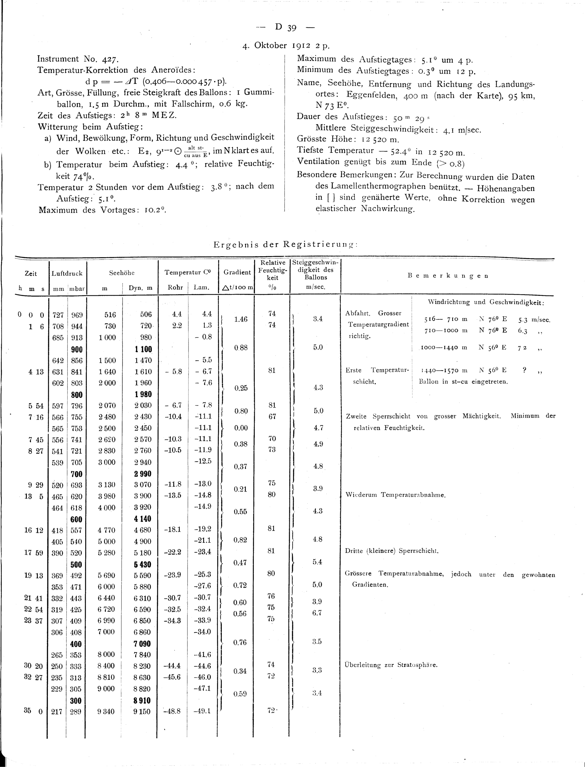 Die Münchener Registrierballonfahrten im Jahre 1912 / August Schmauss