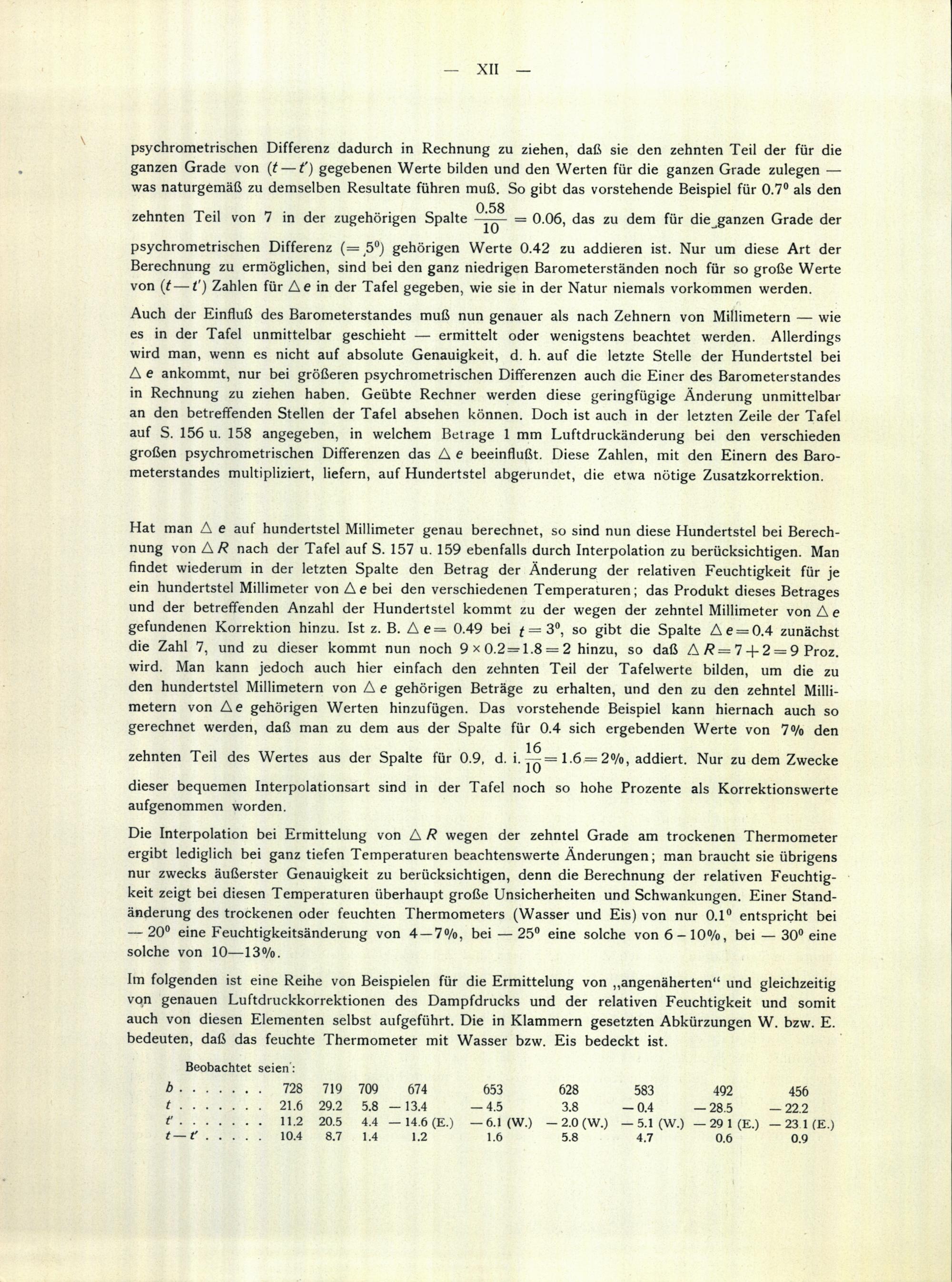 Ausführliche Tafeln für Dampfdruck und relative Feuchtigkeit, gültig für den Luftdruck von 755 mm
