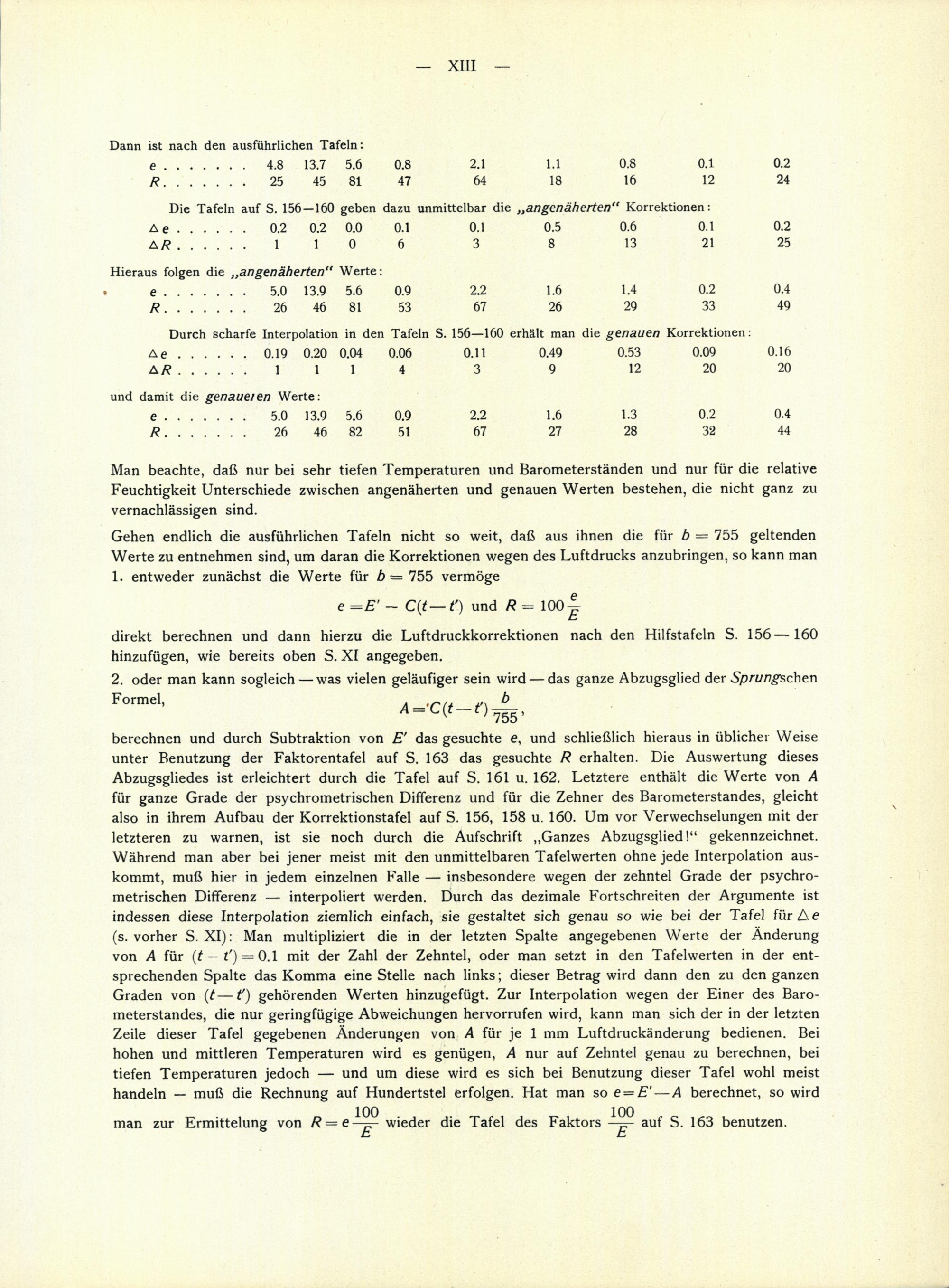 Ausführliche Tafeln für Dampfdruck und relative Feuchtigkeit, gültig für den Luftdruck von 755 mm