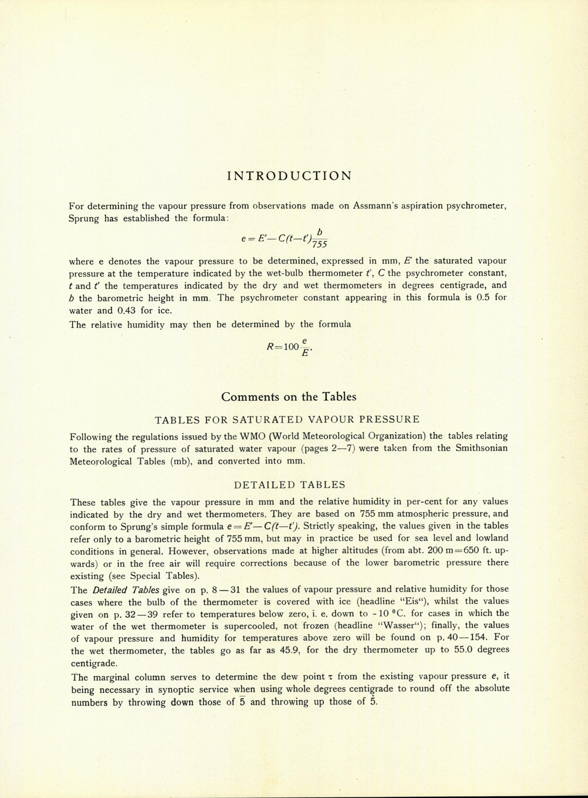 Ausführliche Tafeln für Dampfdruck und relative Feuchtigkeit, gültig für den Luftdruck von 755 mm