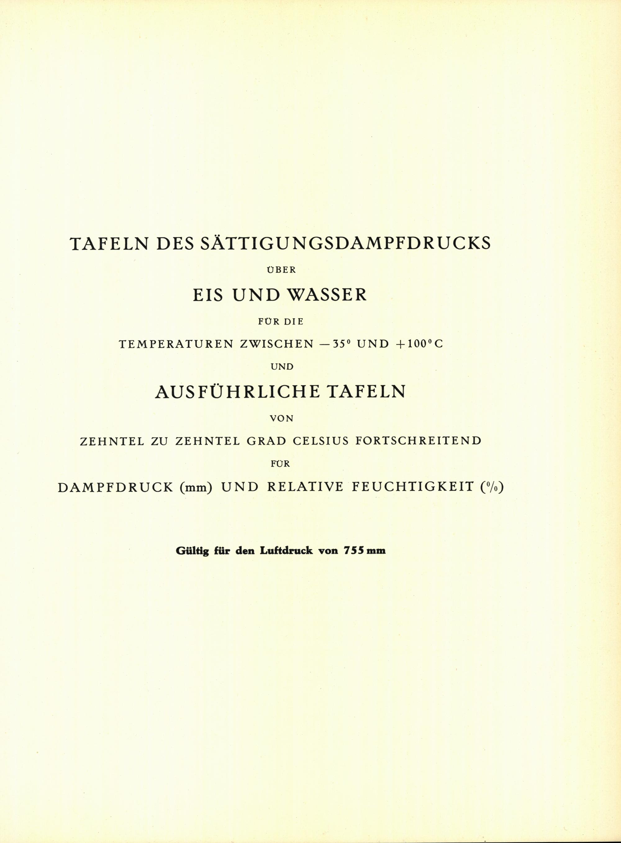 Tafeln des Sättigungsdampfdrucks über Eis und Wasser