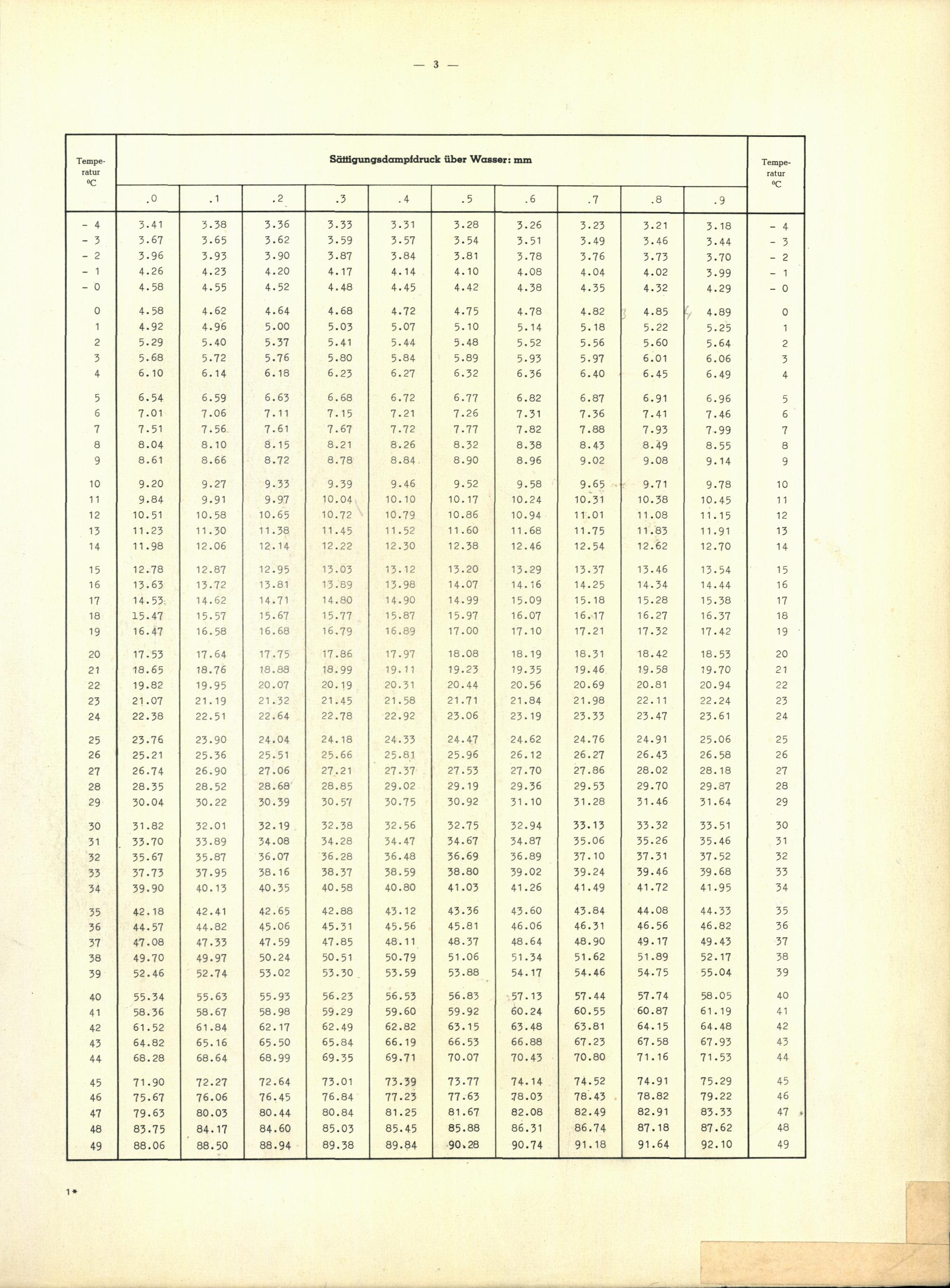 Tafeln des Sättigungsdampfdrucks über Eis und Wasser