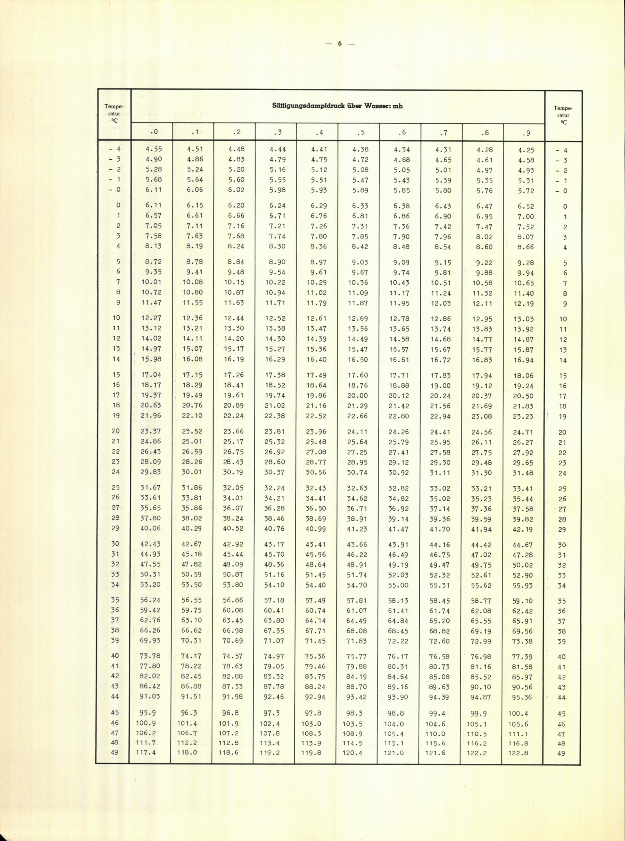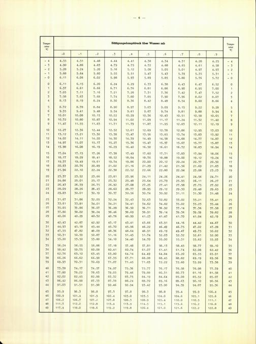 Tafeln des Sättigungsdampfdrucks über Eis und Wasser