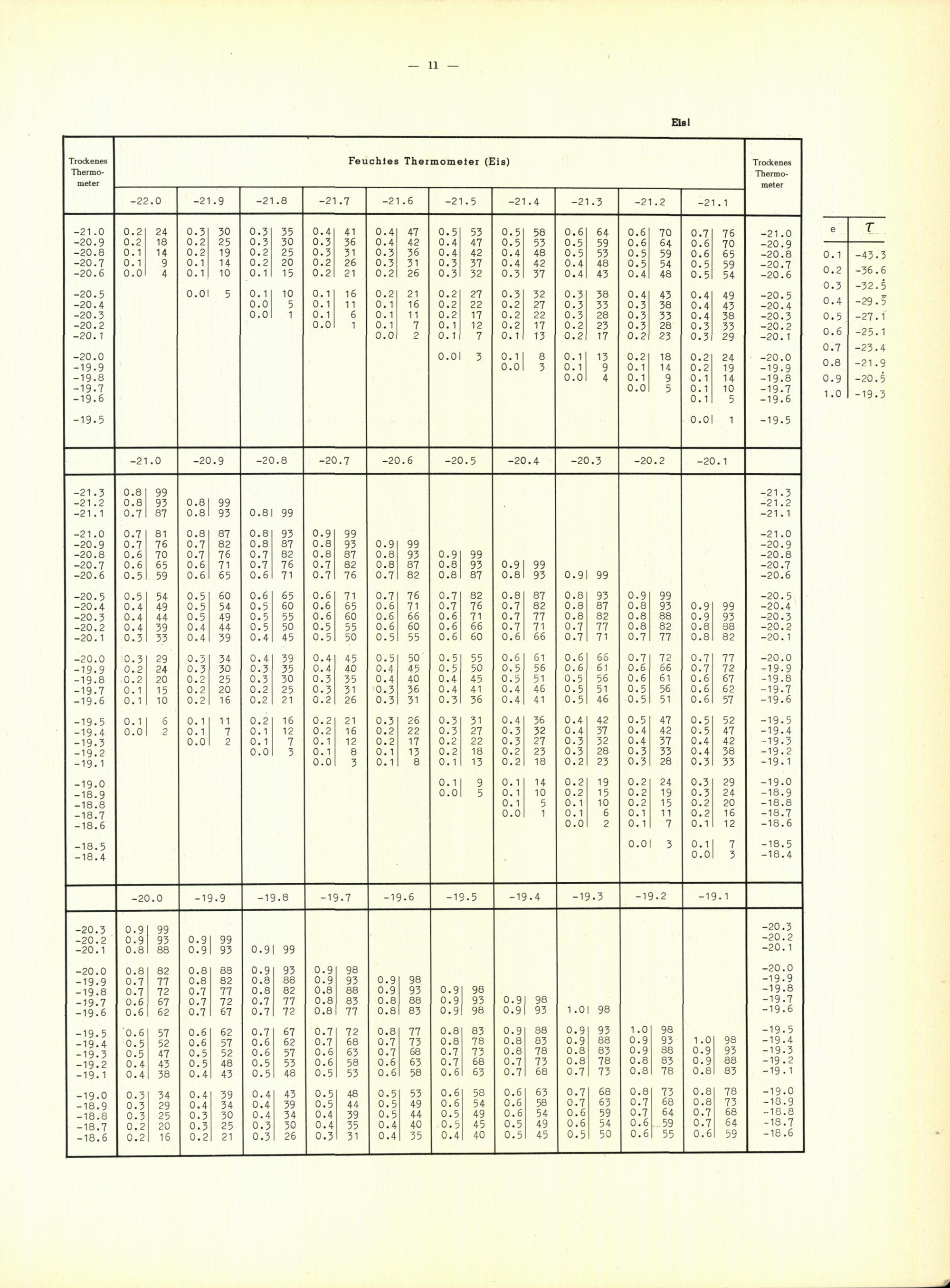 Tafeln zur Bestimmung des Taupunktes aus dem herrschenden Dampfdruck