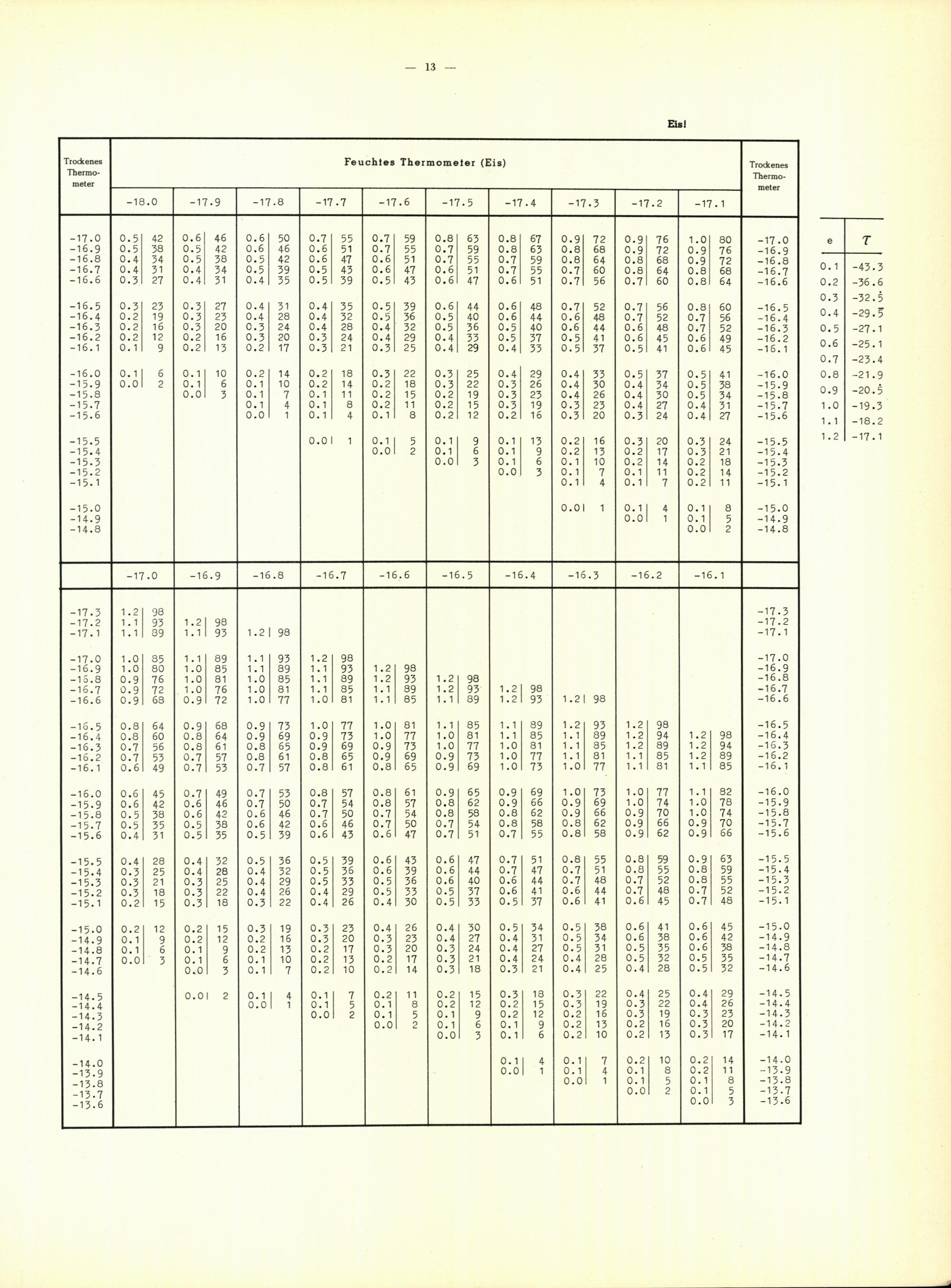 Tafeln des Sättigungsdampfdrucks über Eis und Wasser