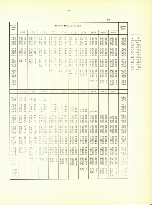 Tafeln zur Bestimmung des Taupunktes aus dem herrschenden Dampfdruck