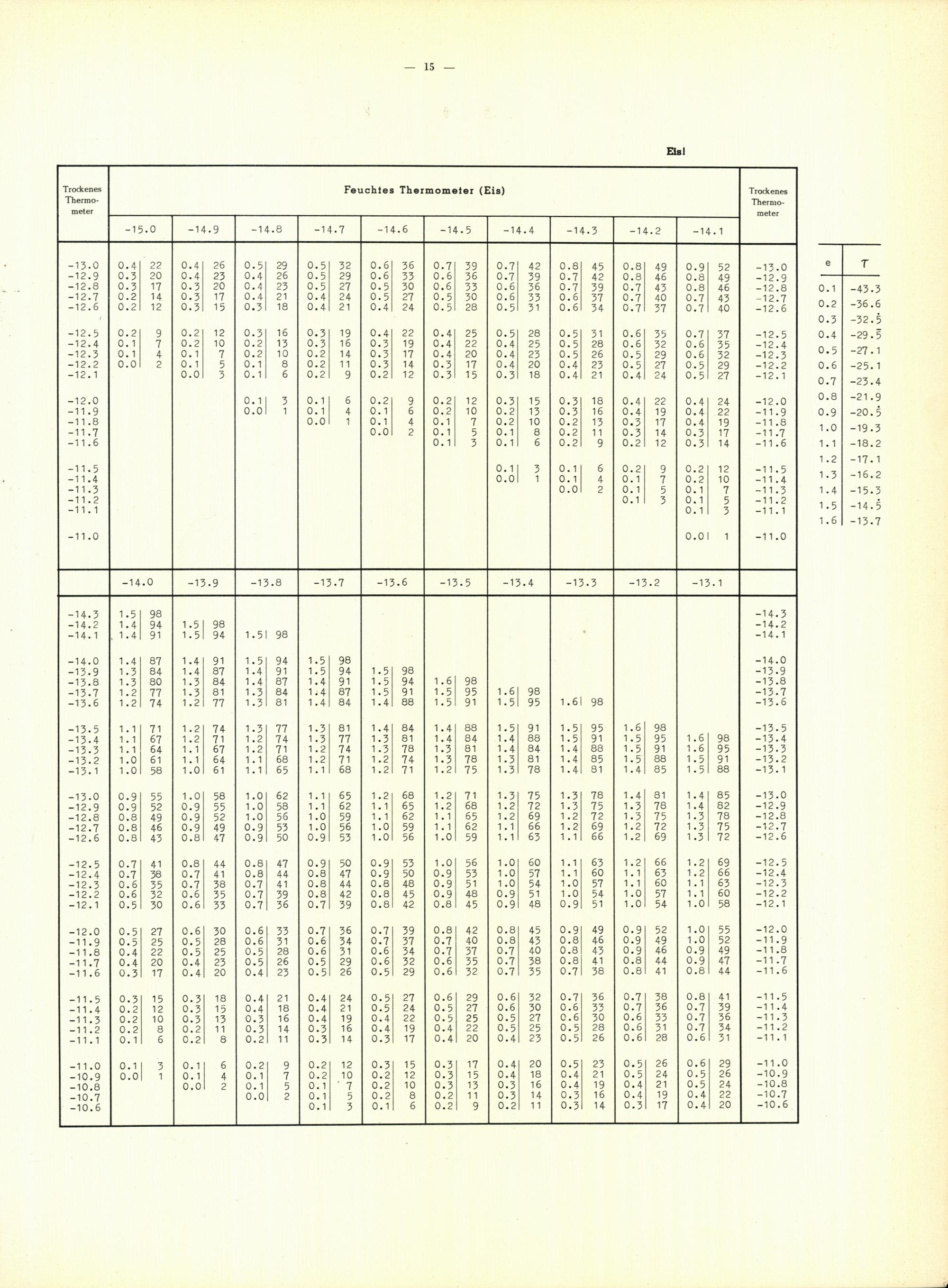 Tafeln zur Bestimmung des Taupunktes aus dem herrschenden Dampfdruck