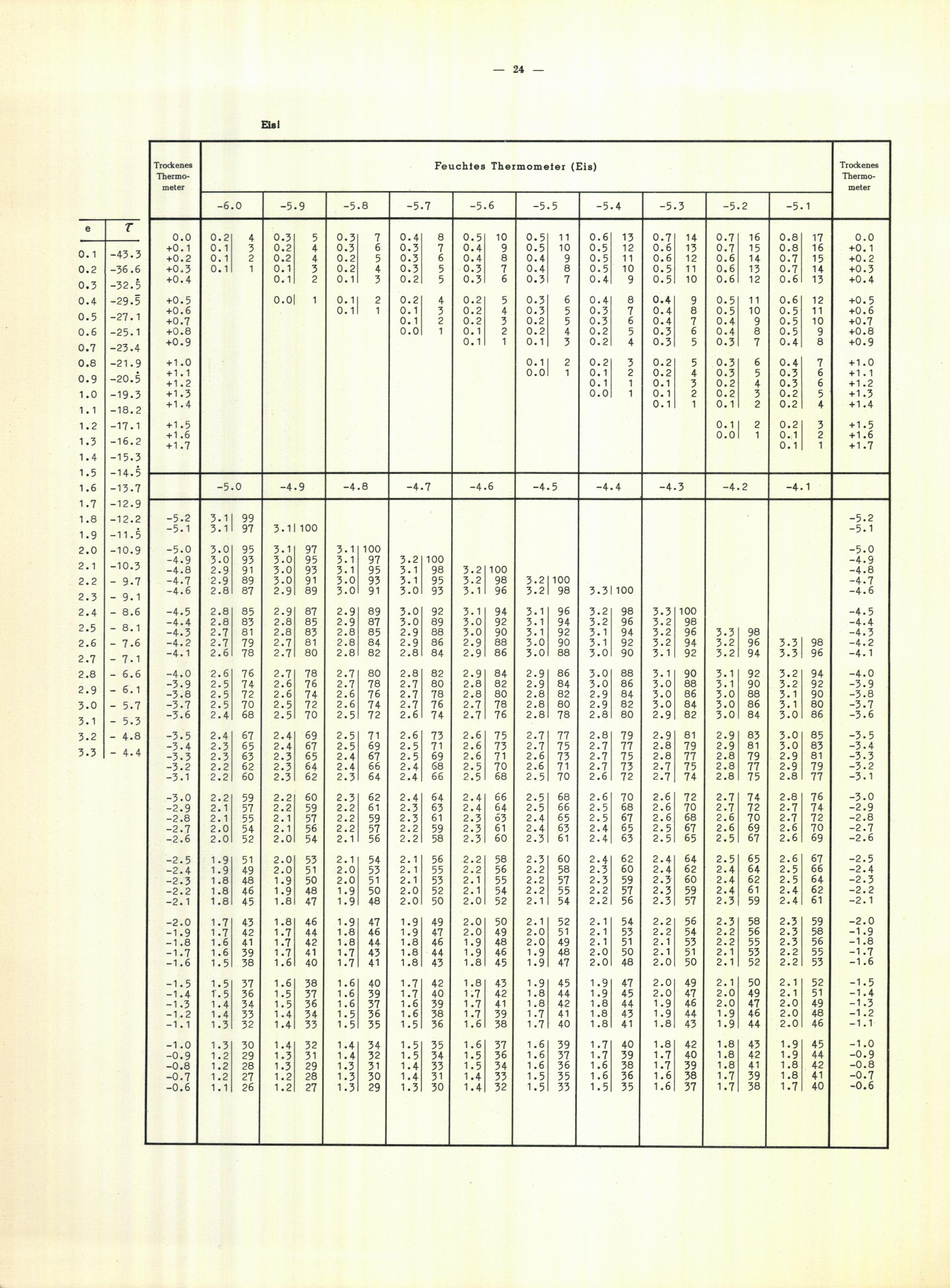 Tafeln zur Bestimmung des Taupunktes aus dem herrschenden Dampfdruck