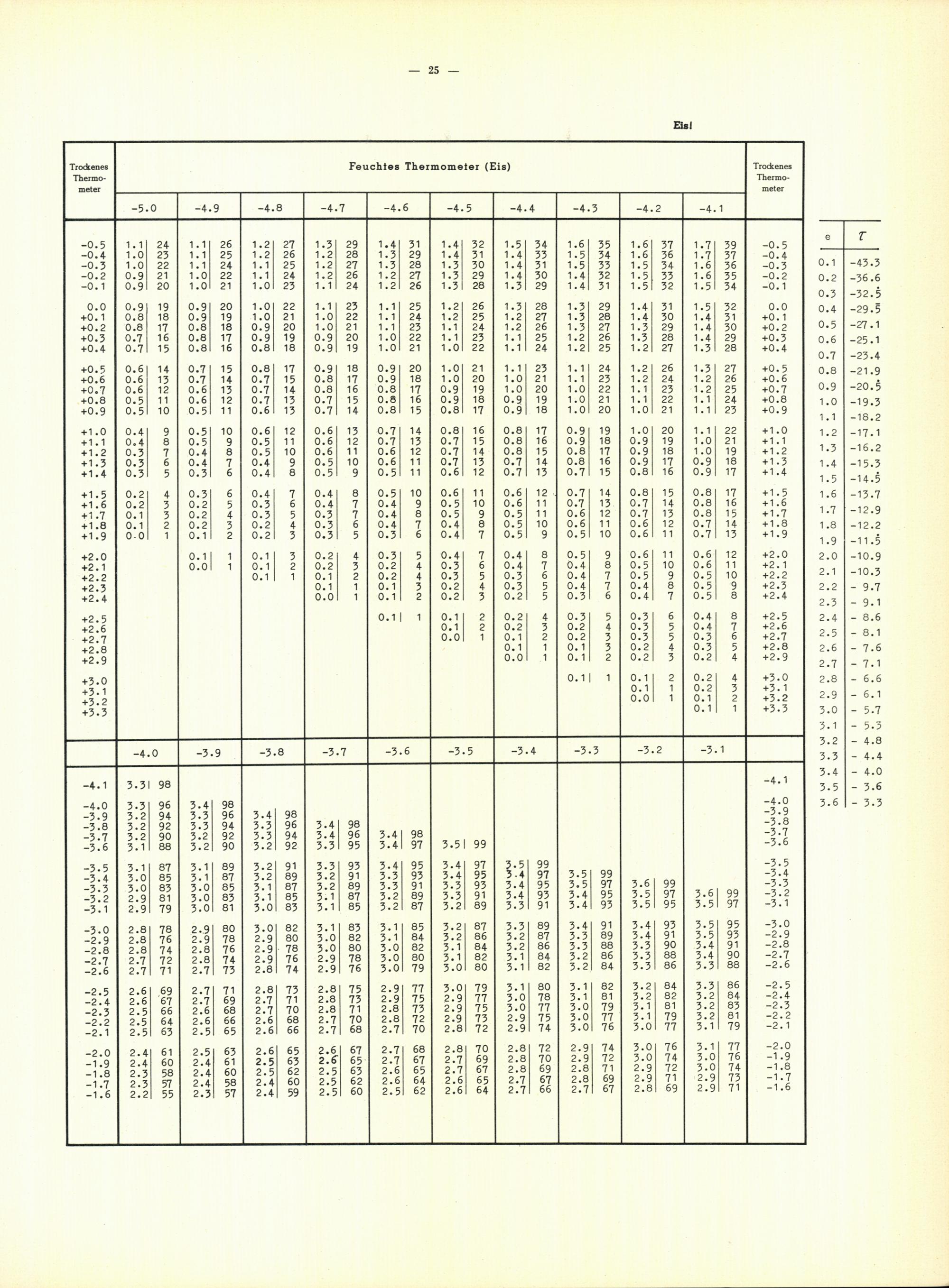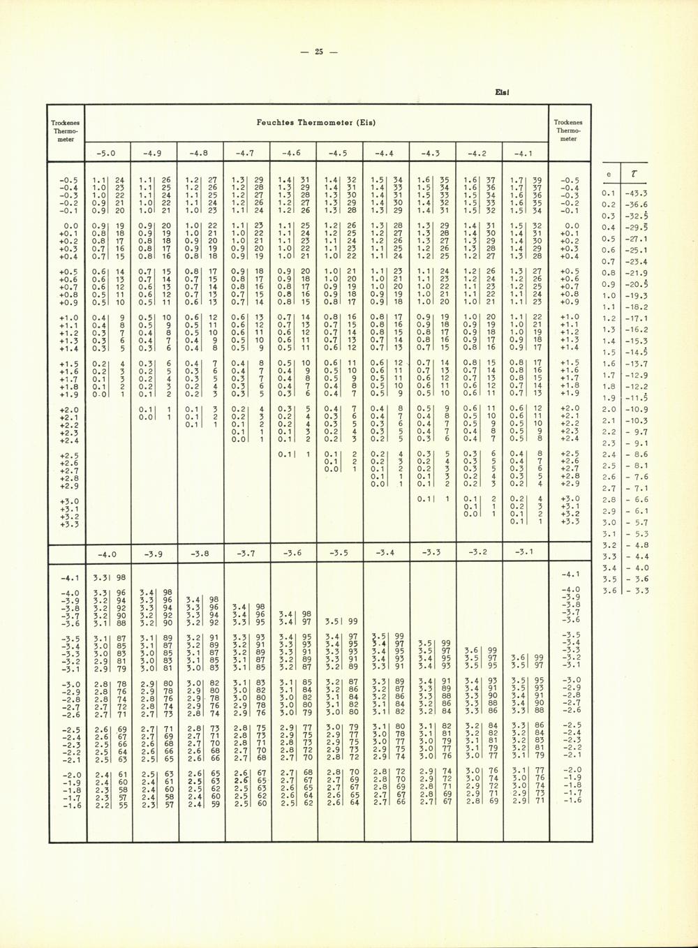 Tafeln zur Bestimmung des Taupunktes aus dem herrschenden Dampfdruck