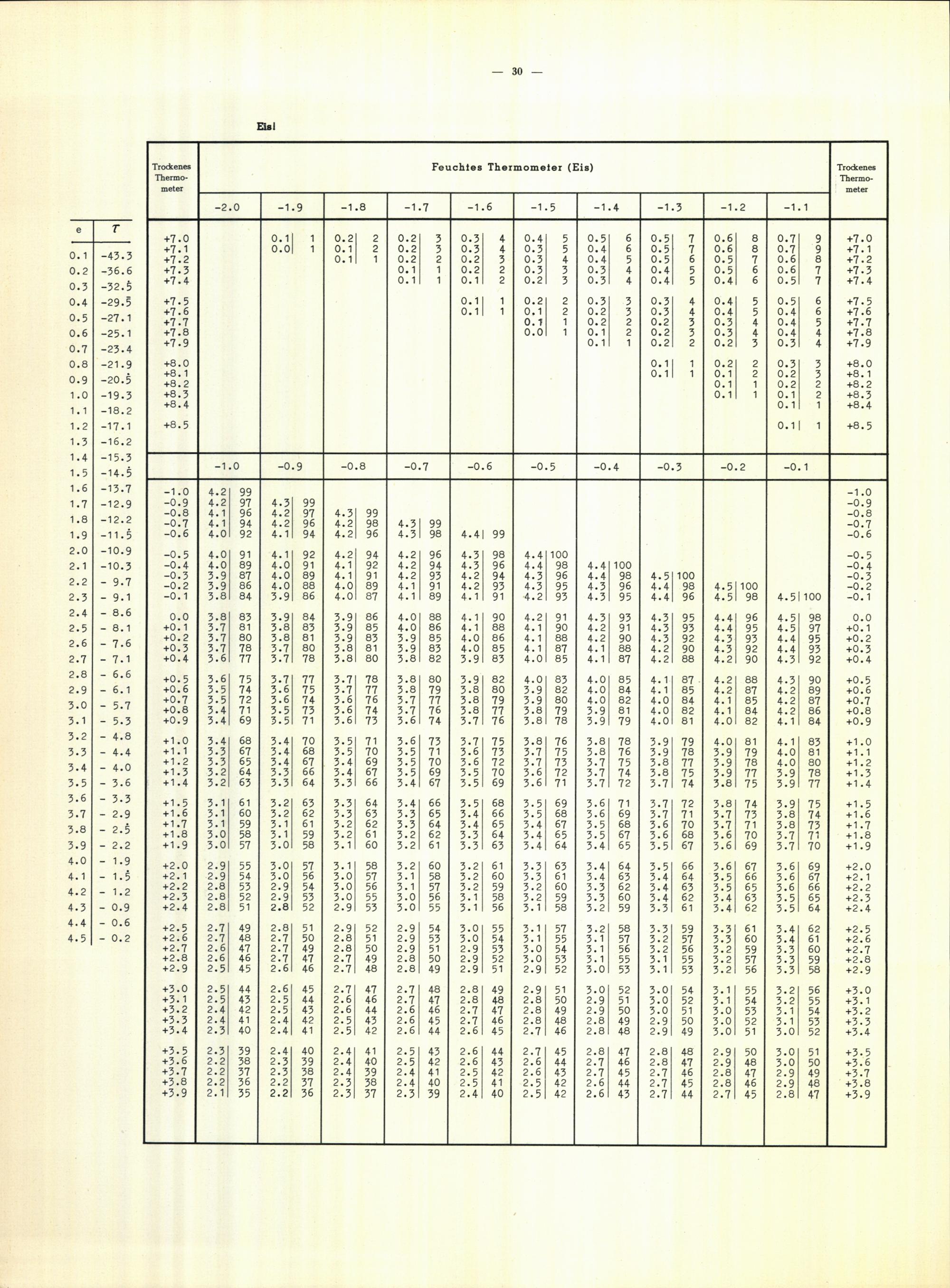 Tafeln zur Bestimmung des Taupunktes aus dem herrschenden Dampfdruck