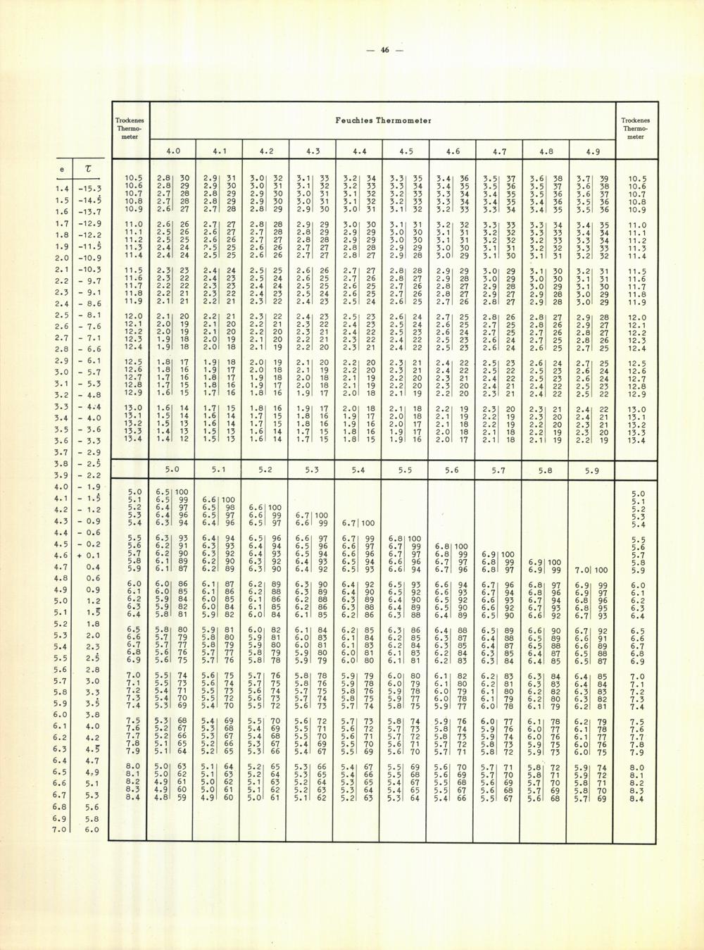 Tafeln zur Bestimmung des Taupunktes aus dem herrschenden Dampfdruck