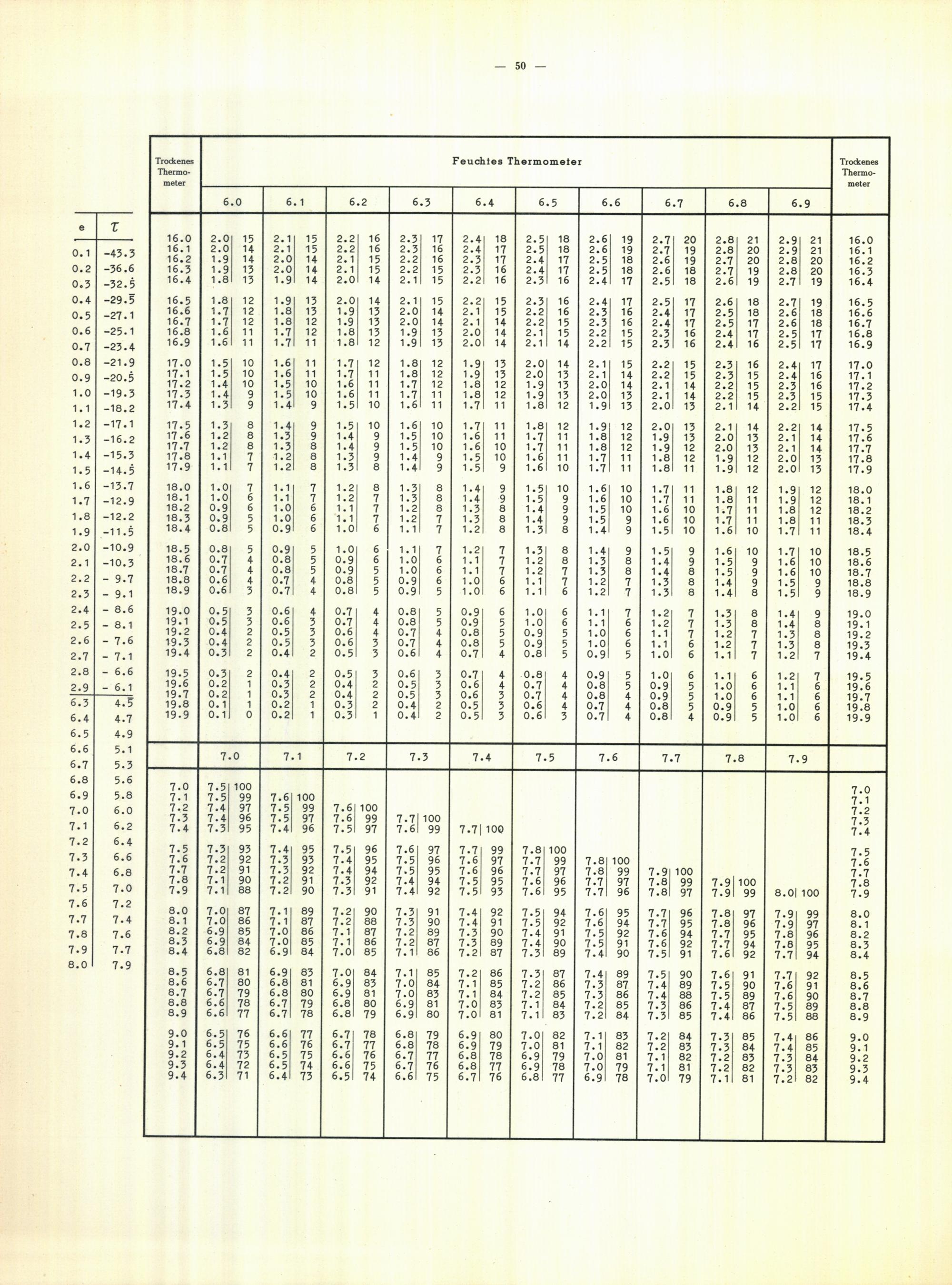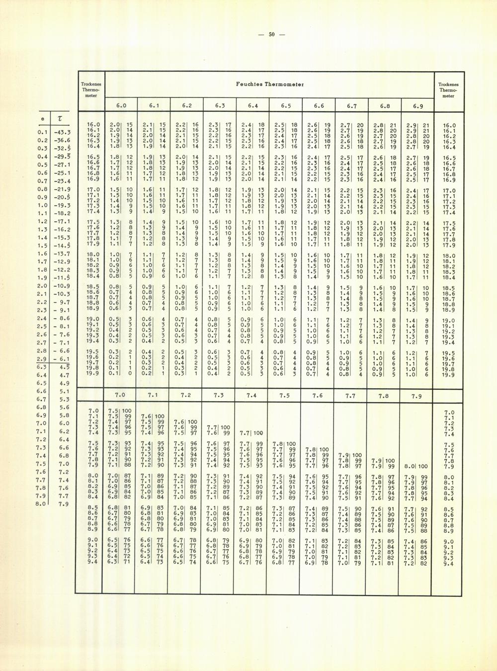 Aspirations-Psychrometer-Tafeln