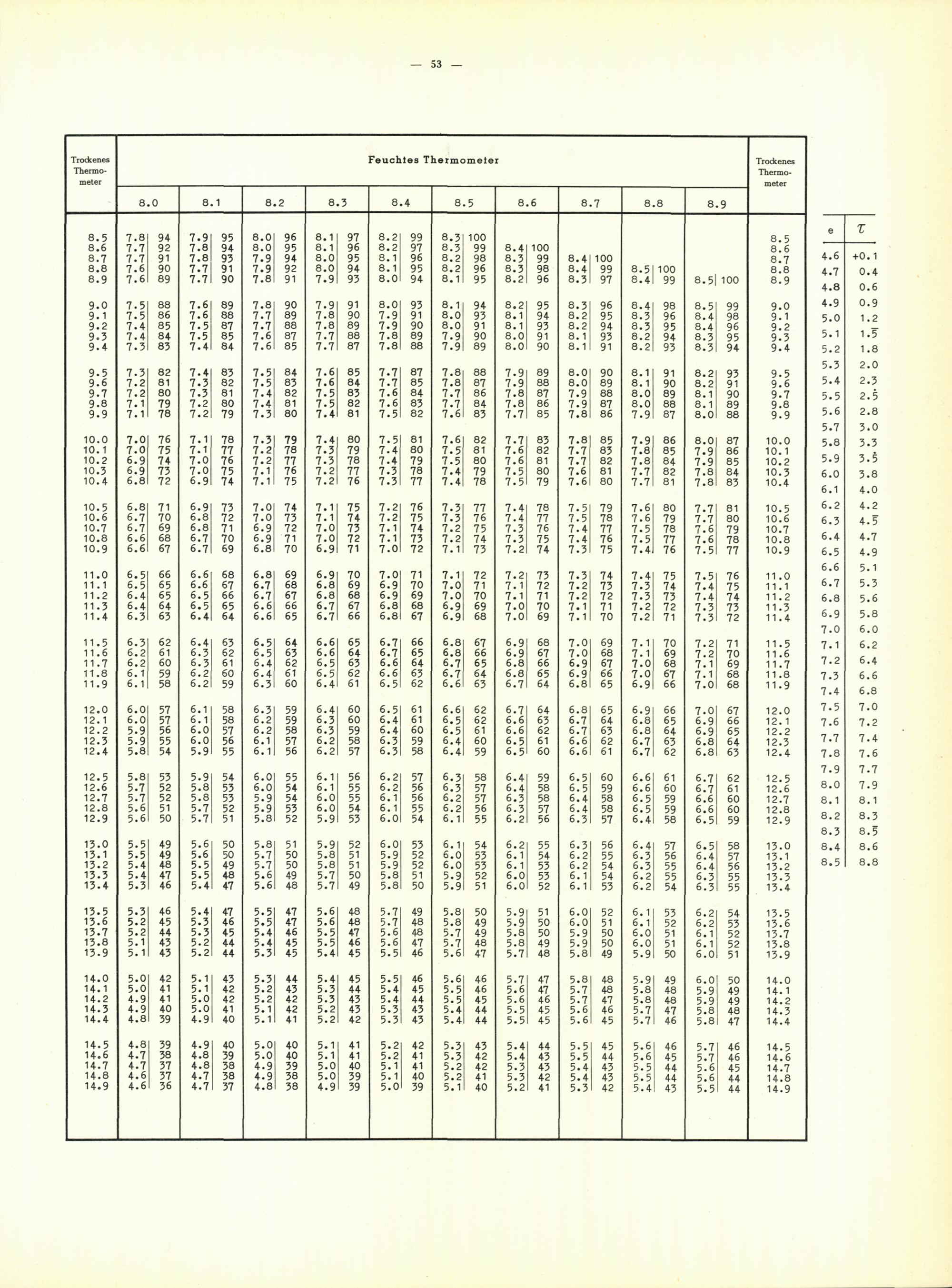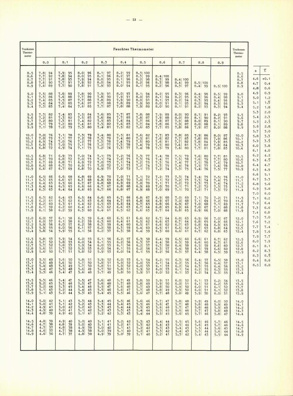 Aspirations-Psychrometer-Tafeln