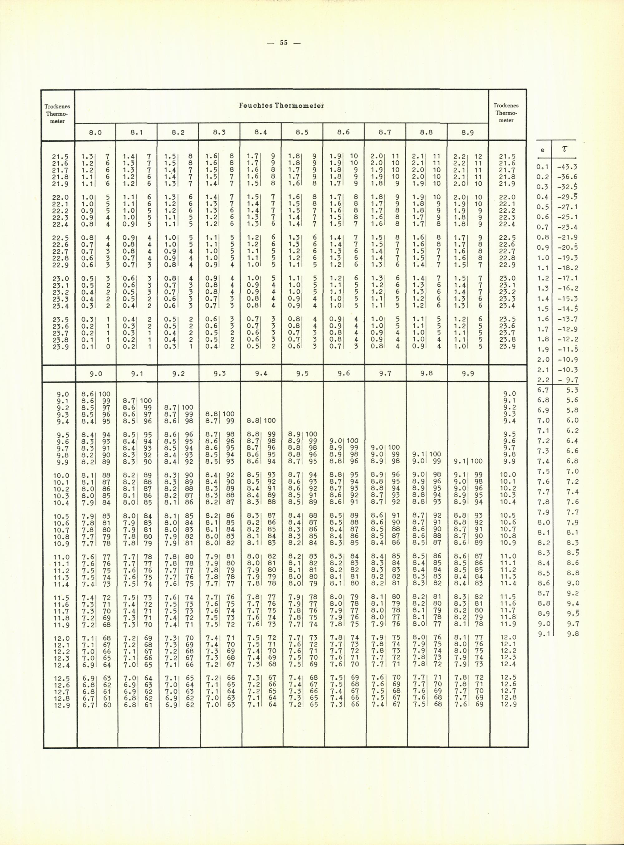 Tafeln zur Bestimmung des Taupunktes aus dem herrschenden Dampfdruck
