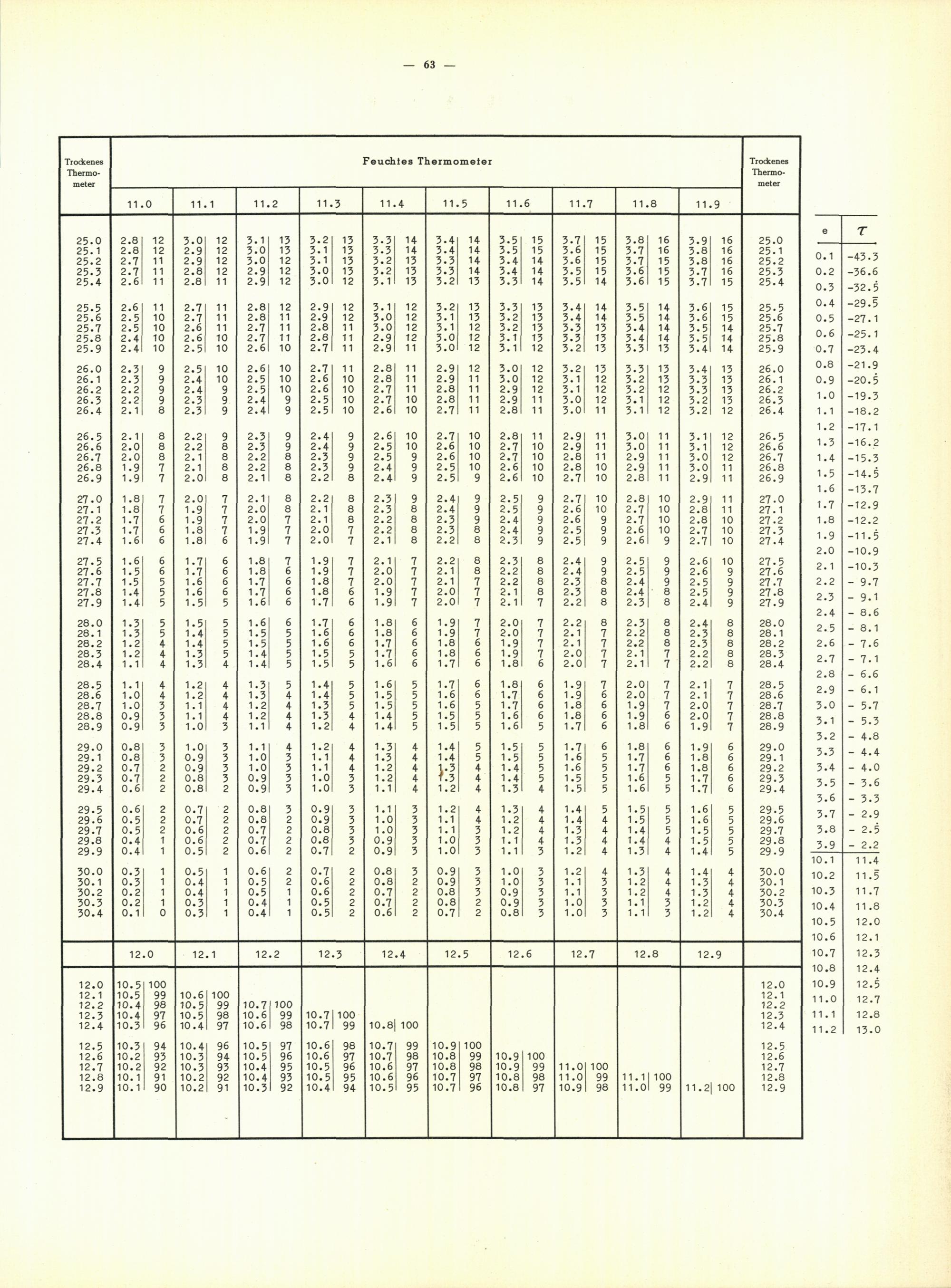 Tafeln zur Bestimmung des Taupunktes aus dem herrschenden Dampfdruck