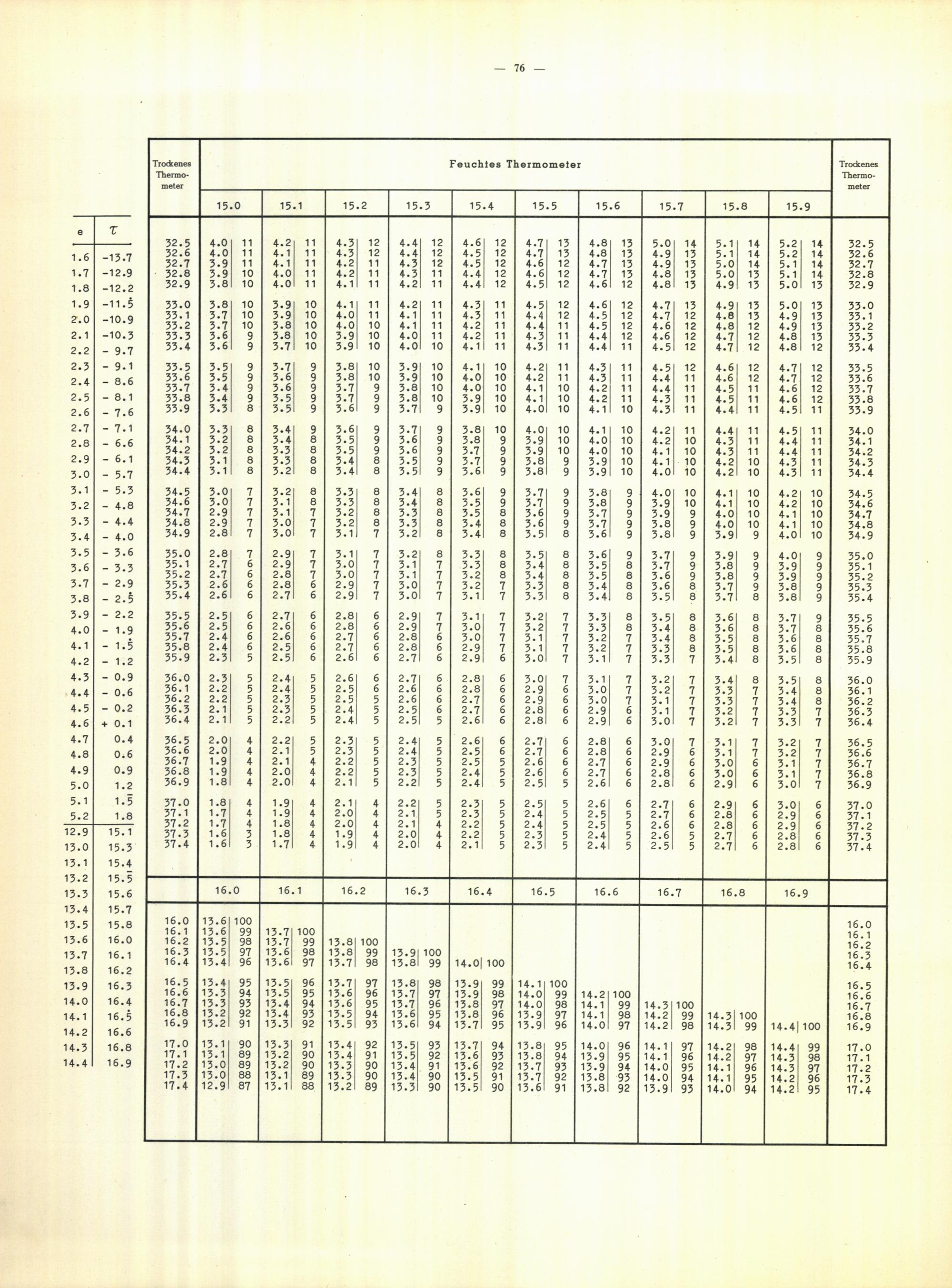 Tafeln zur Bestimmung des Taupunktes aus dem herrschenden Dampfdruck