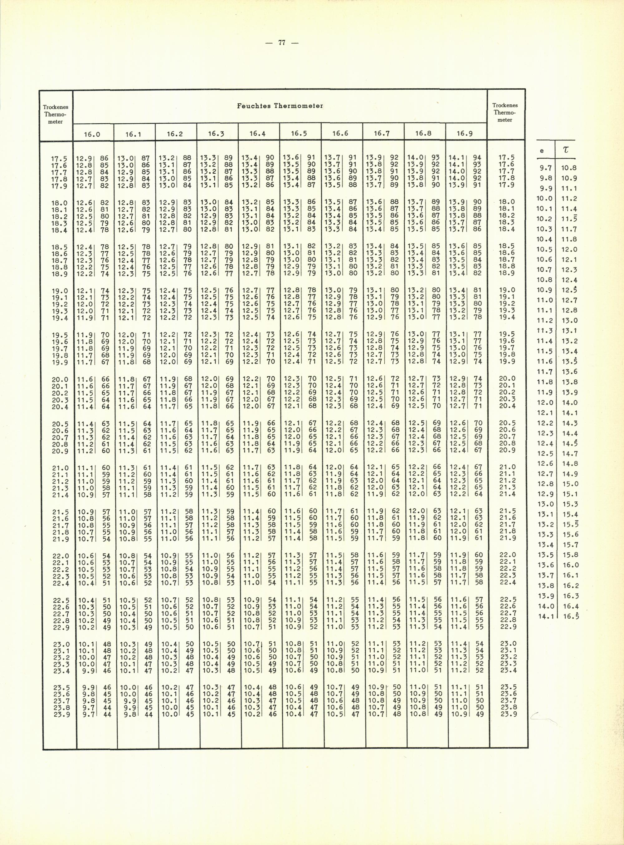 Aspirations-Psychrometer-Tafeln