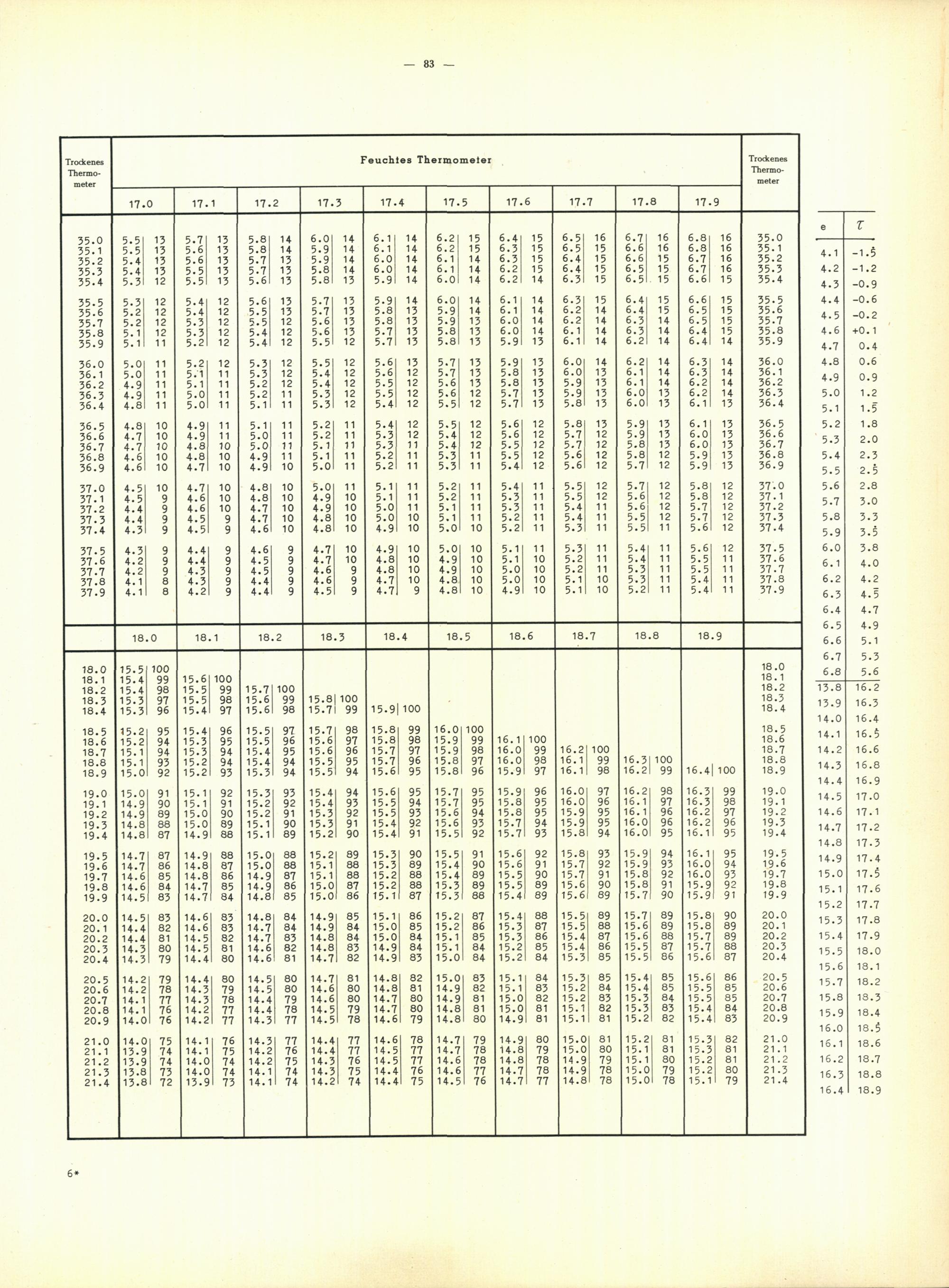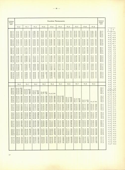 Tafeln zur Bestimmung des Taupunktes aus dem herrschenden Dampfdruck