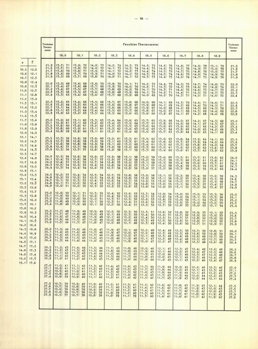 Tafeln zur Bestimmung des Taupunktes aus dem herrschenden Dampfdruck