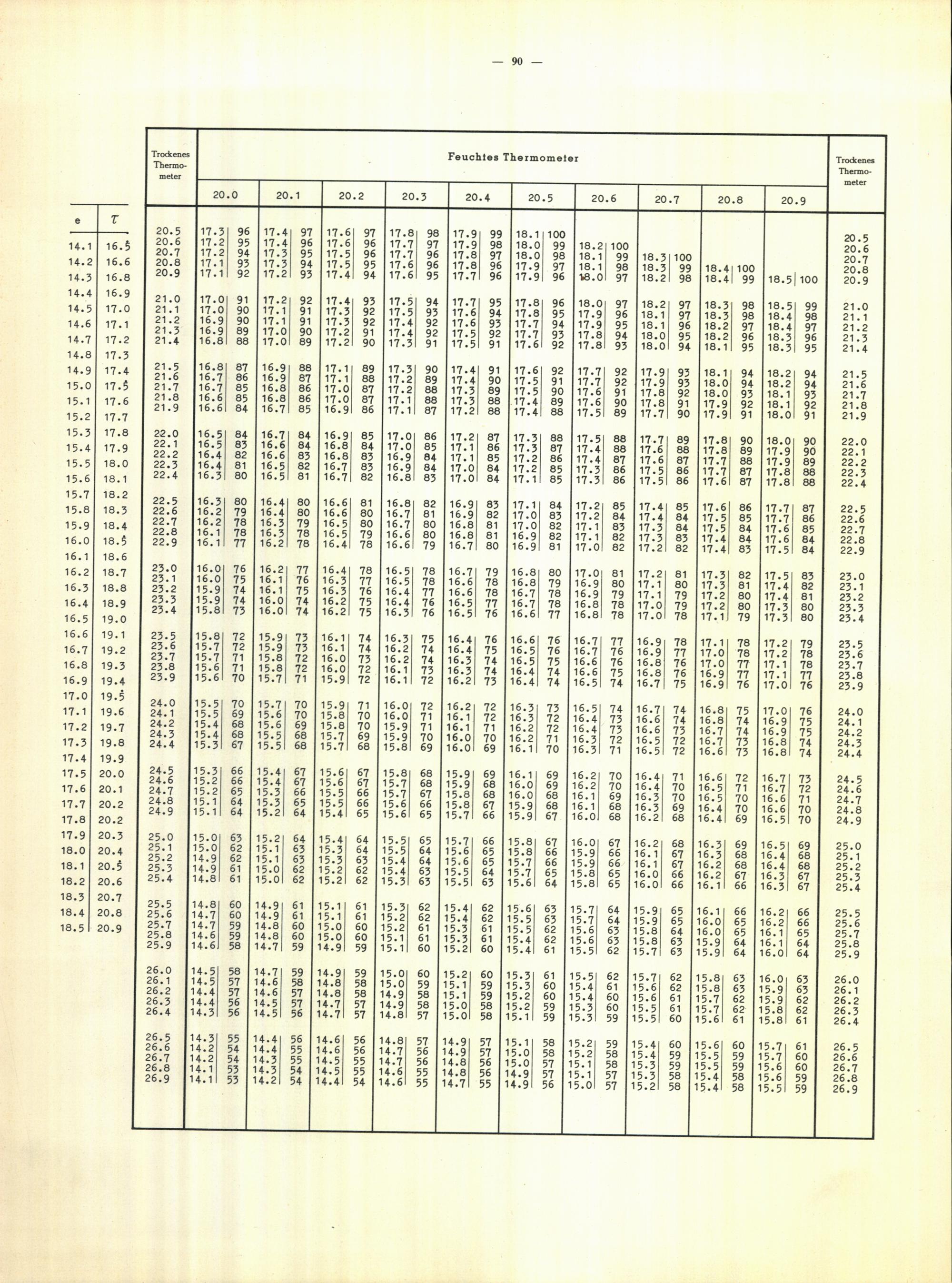 Aspirations-Psychrometer-Tafeln
