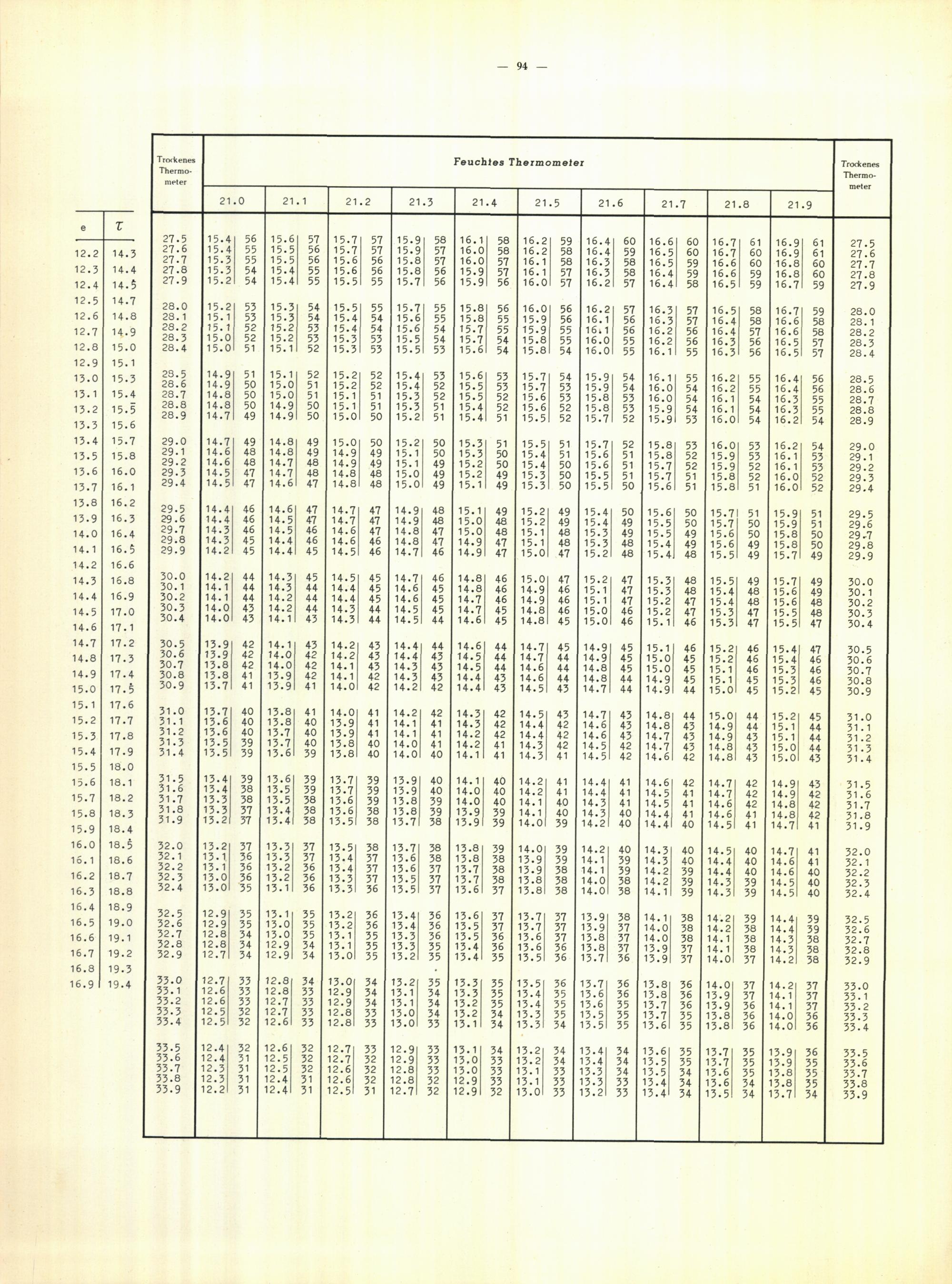 Aspirations-Psychrometer-Tafeln