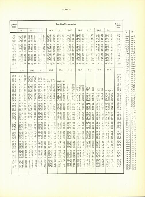 Ausführliche Tafeln für Dampfdruck und relative Feuchtigkeit, gültig für den Luftdruck...
