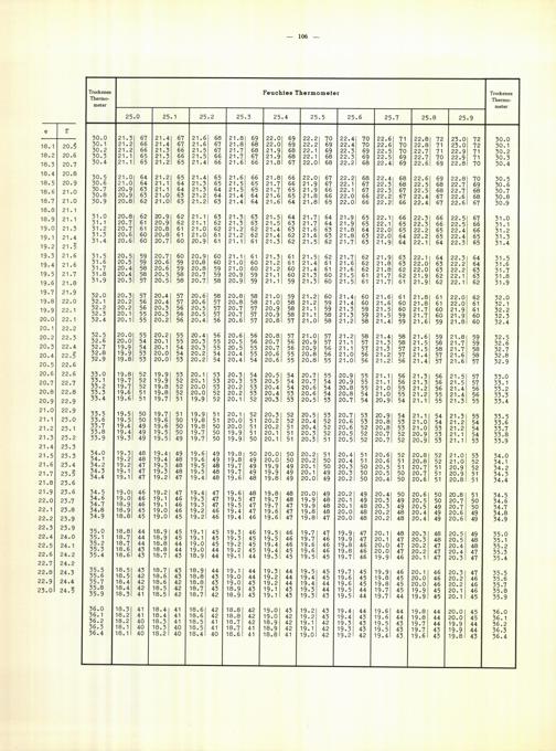 Tafeln zur Bestimmung des Taupunktes aus dem herrschenden Dampfdruck