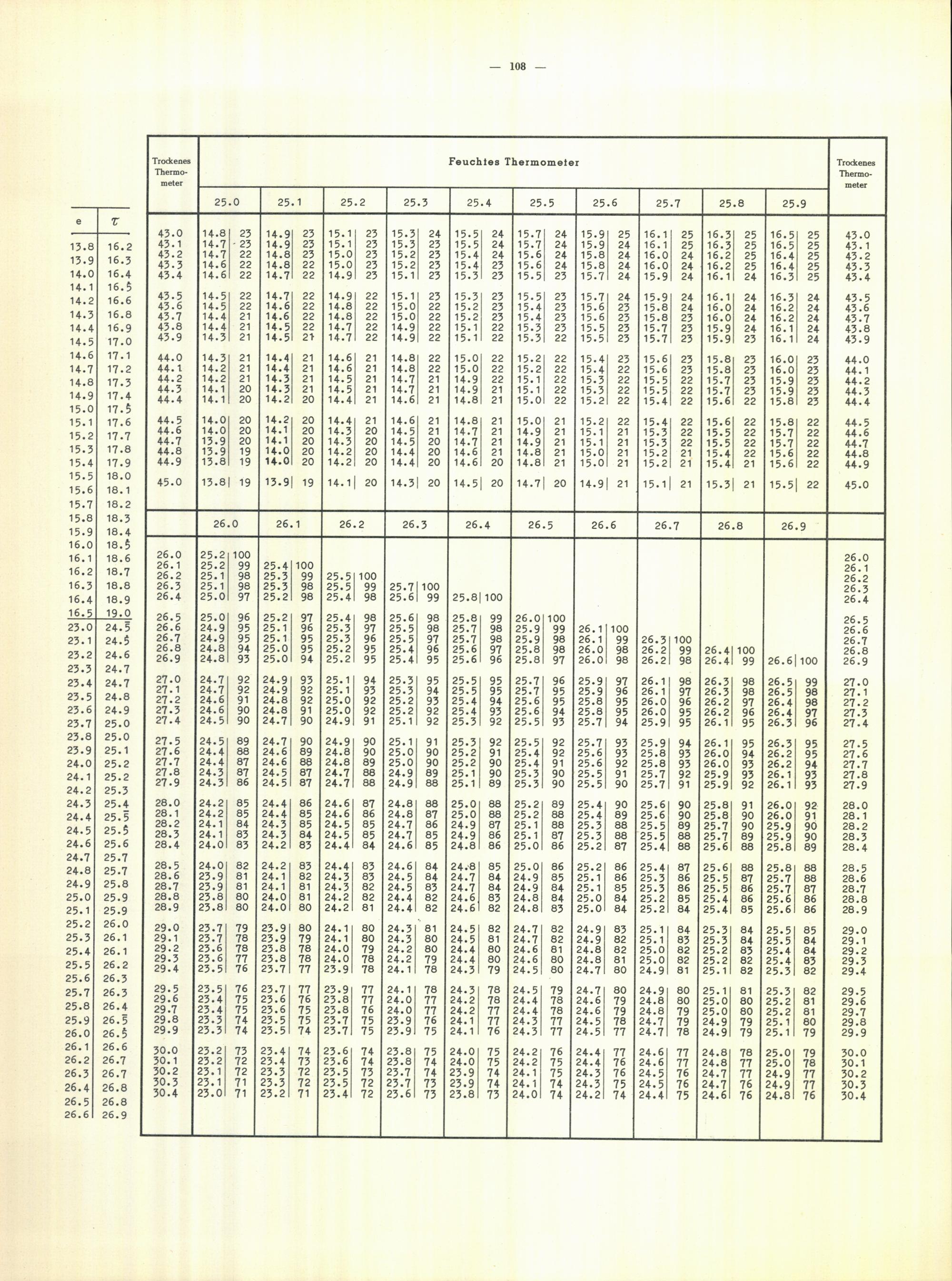 Aspirations-Psychrometer-Tafeln