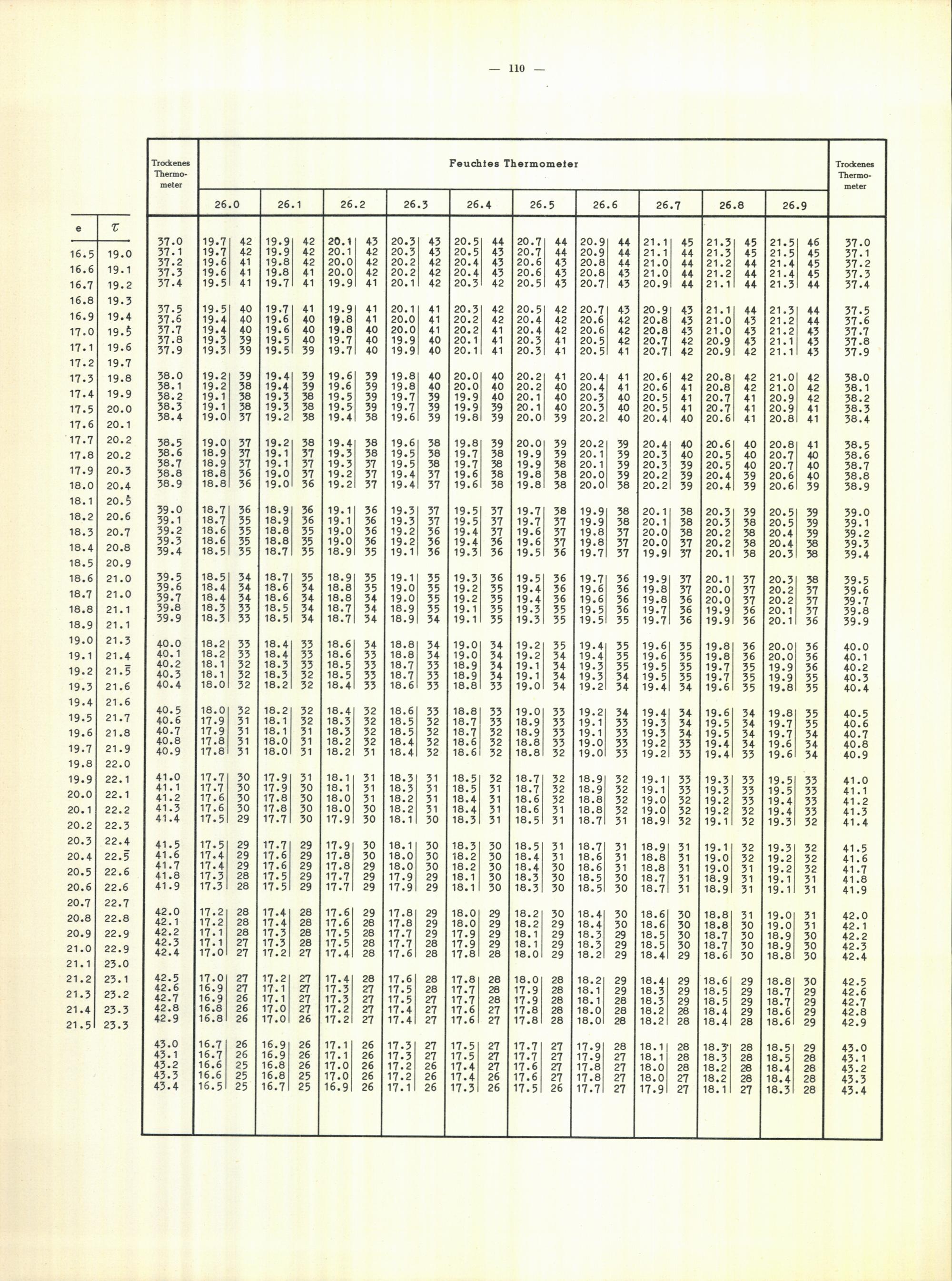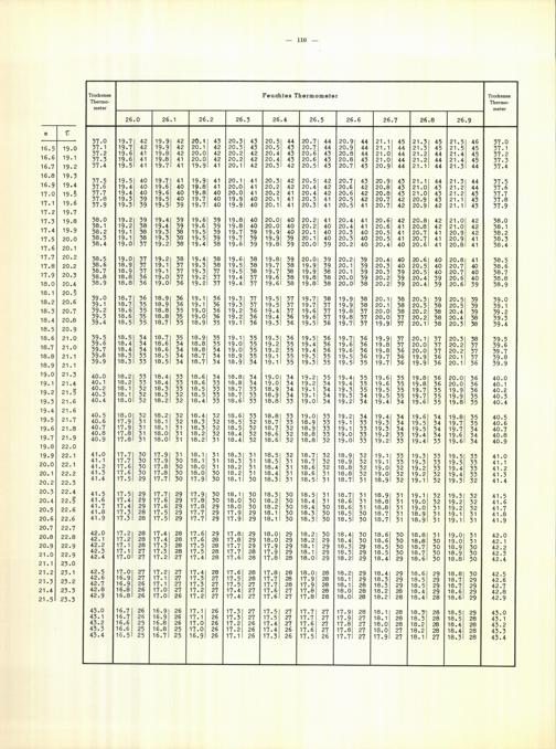 Tafeln zur Bestimmung des Taupunktes aus dem herrschenden Dampfdruck