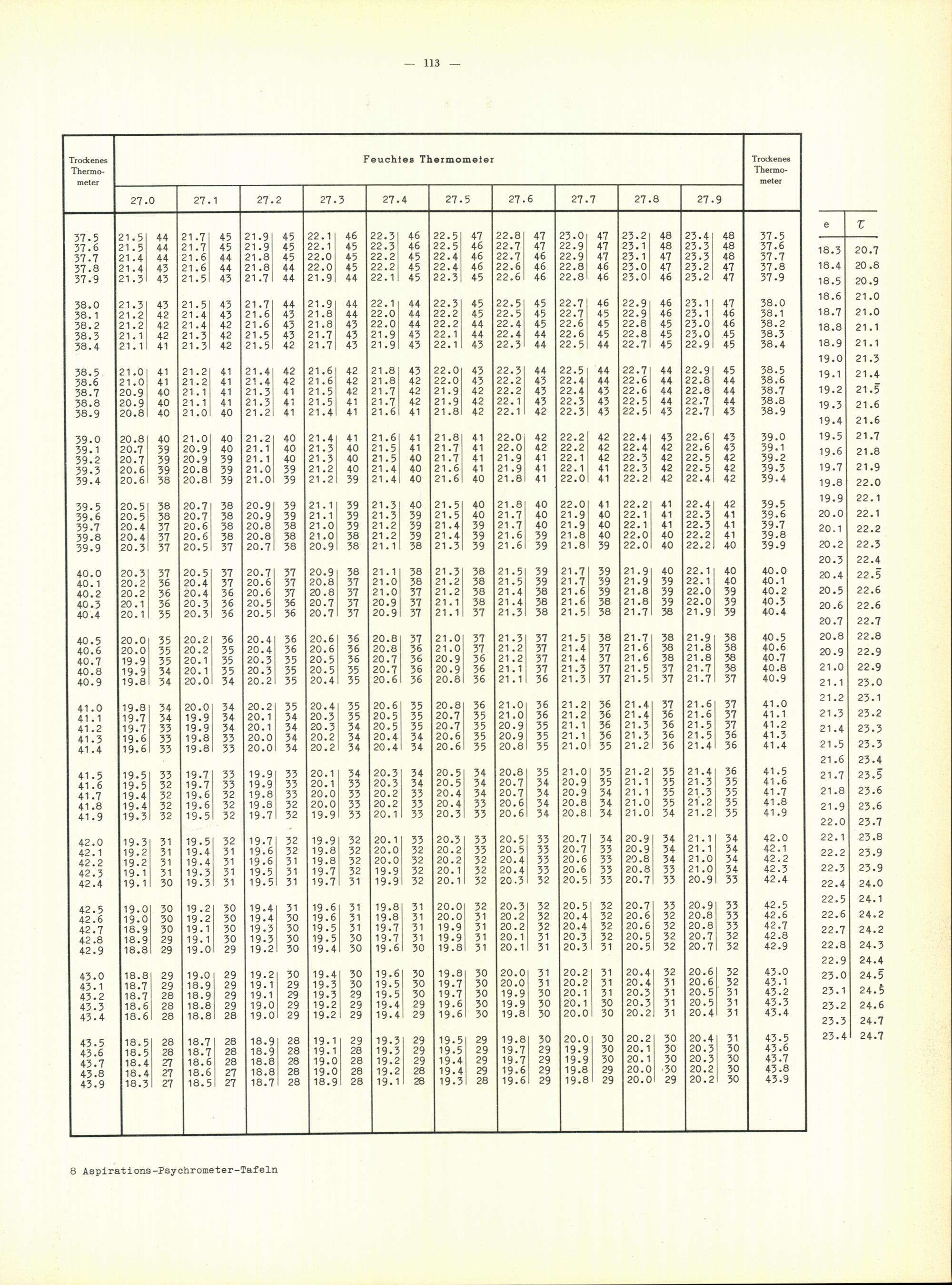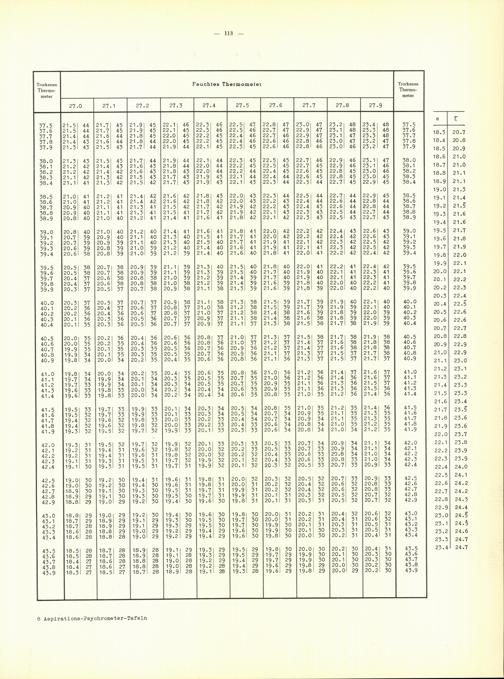 Aspirations-Psychrometer-Tafeln