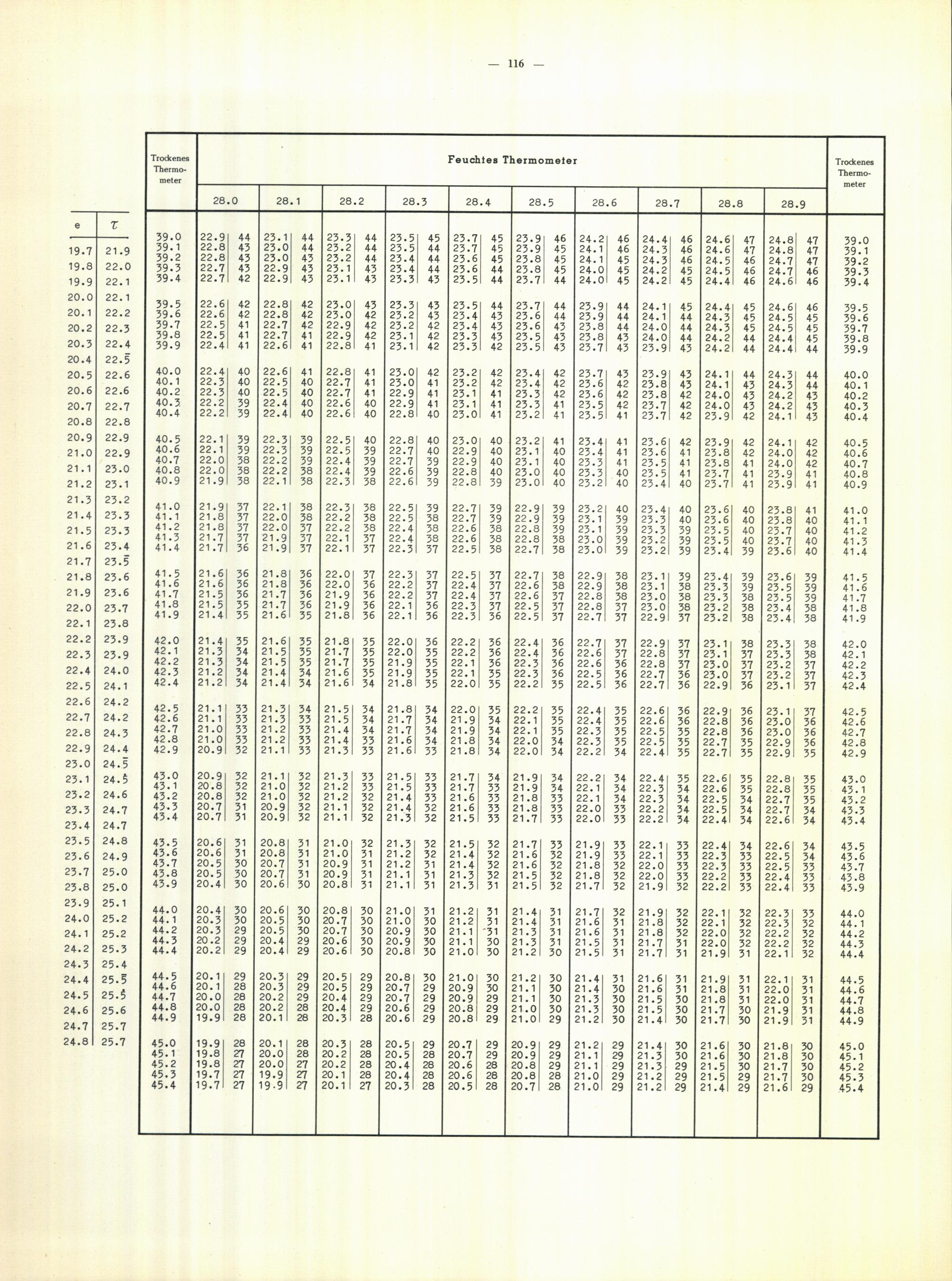 Tafeln zur Bestimmung des Sättigungsdefizits aus Temperatur und relativer Feuchtigkeit
