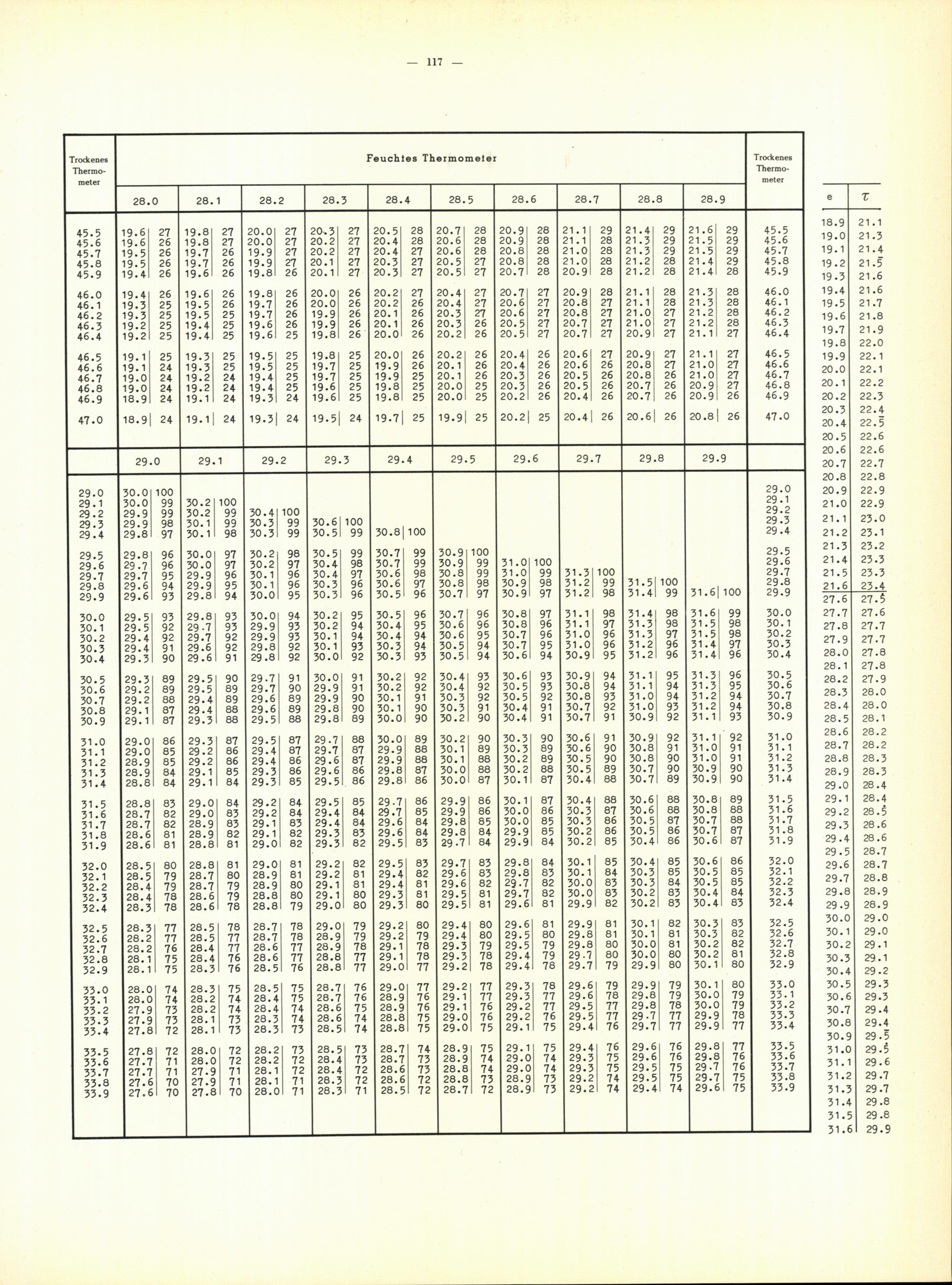 Aspirations-Psychrometer-Tafeln