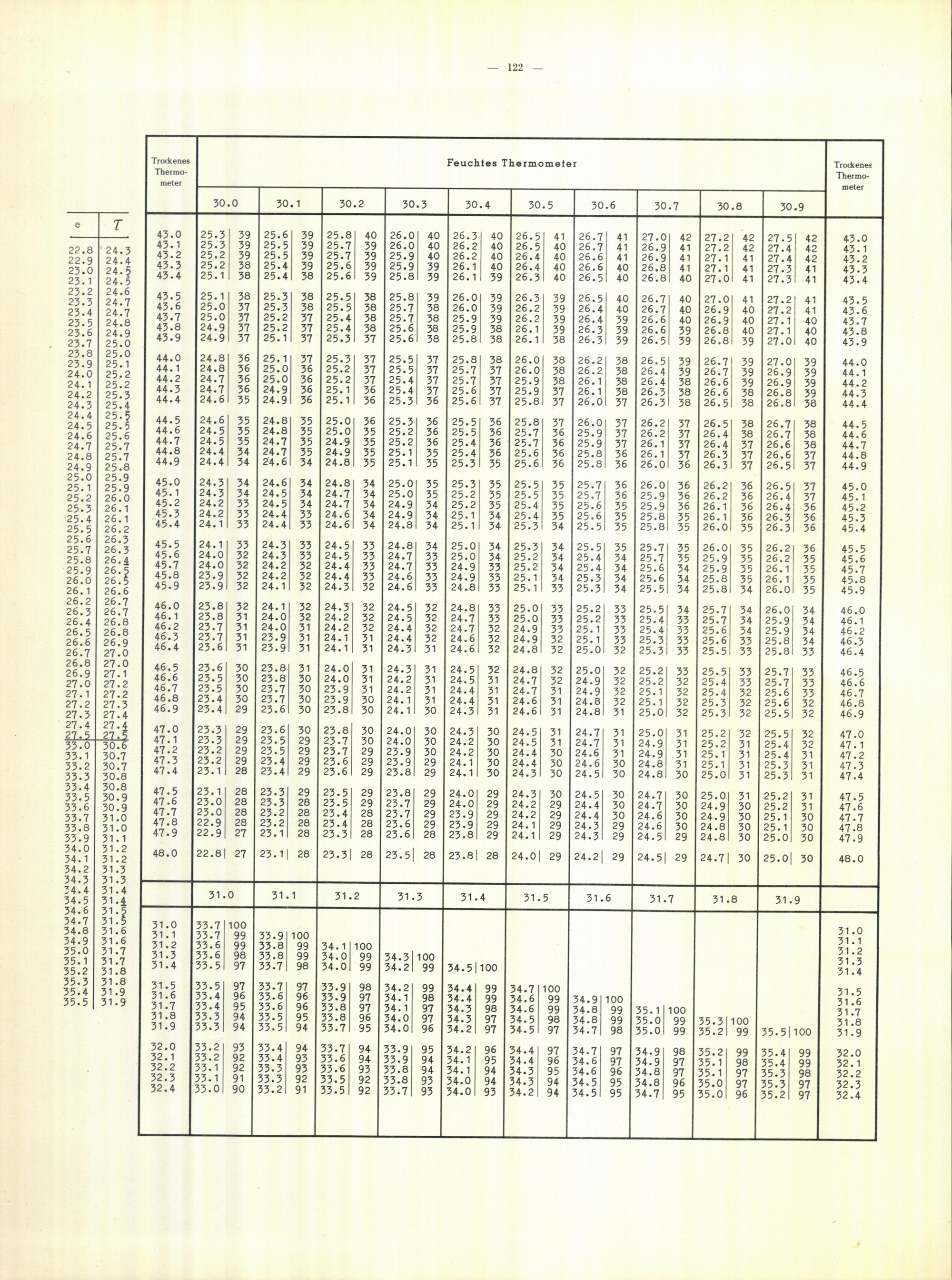 Aspirations-Psychrometer-Tafeln