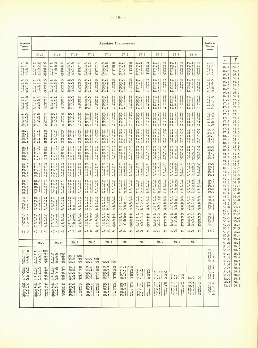 Tafeln zur Bestimmung des Taupunktes aus dem herrschenden Dampfdruck