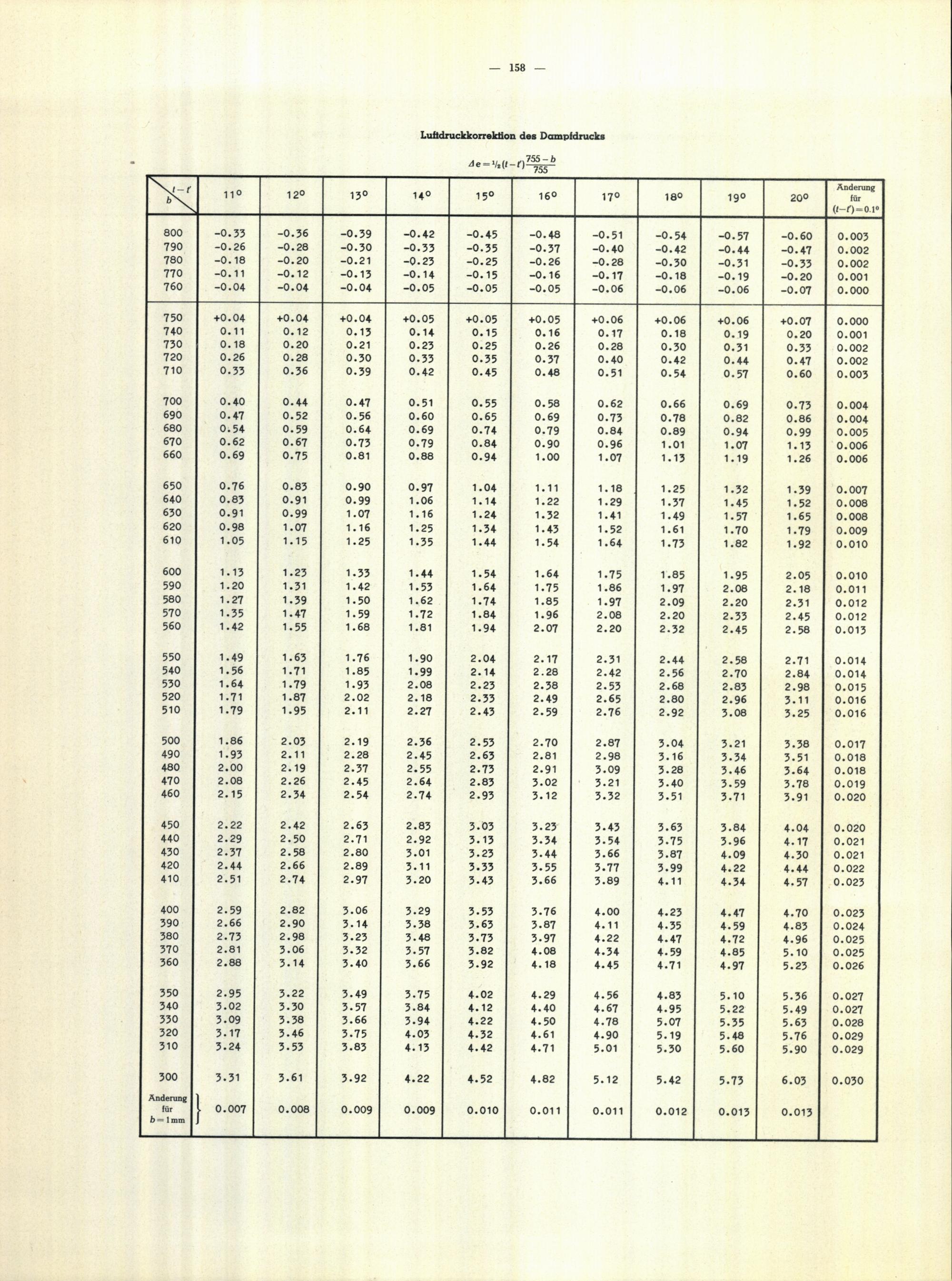 Tafeln zur Bestimmung des Taupunktes aus dem herrschenden Dampfdruck