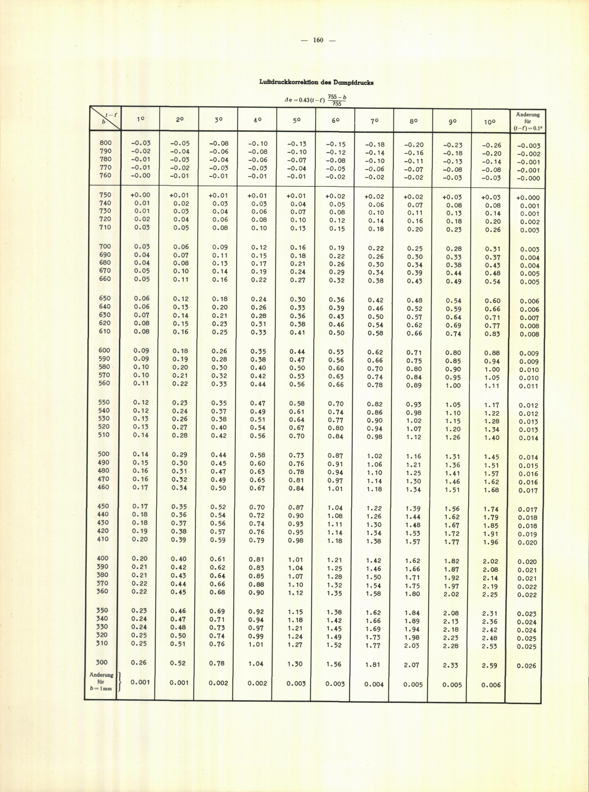 Tafeln zu Berechnung des Dampfdrucks aus den Angaben des Haarhygrometers un der Lufttemperatur