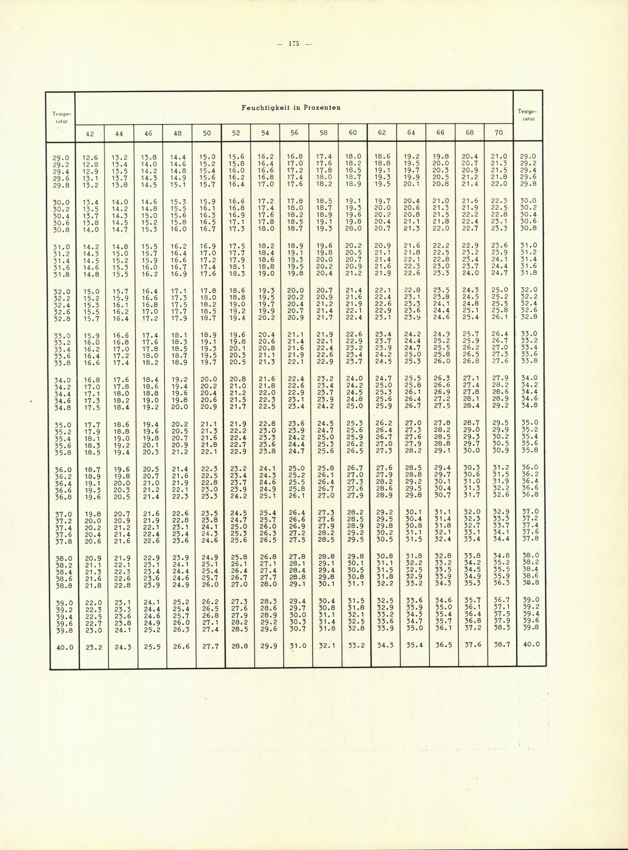 Tafeln zur Bestimmung des Taupunktes aus dem herrschenden Dampfdruck