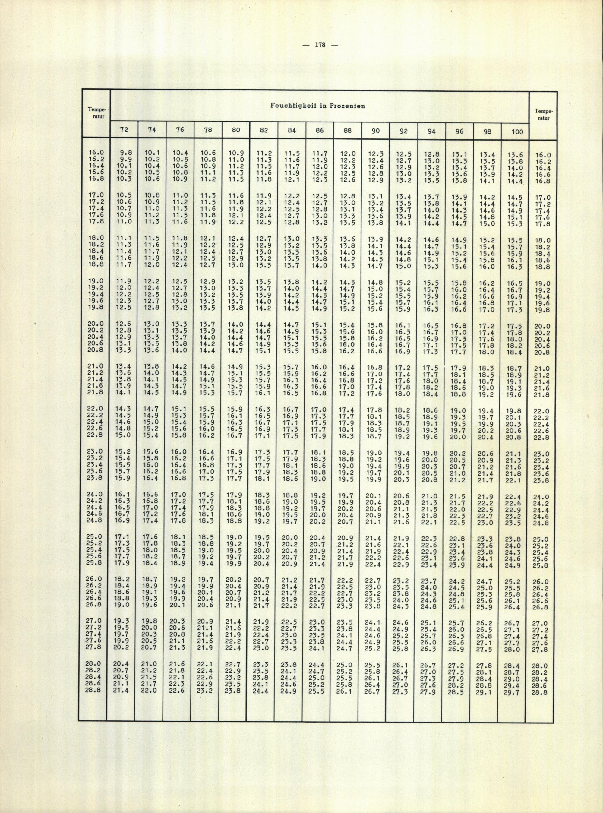 Tafeln zur Bestimmung des Taupunktes aus dem herrschenden Dampfdruck