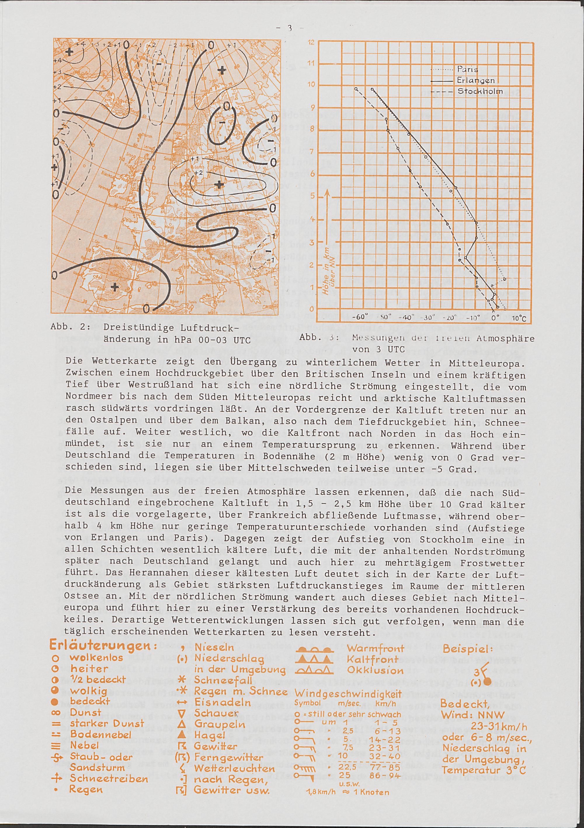Übungswetterkarte Nr. 1: winterlicher Kaltlufteinbruch
