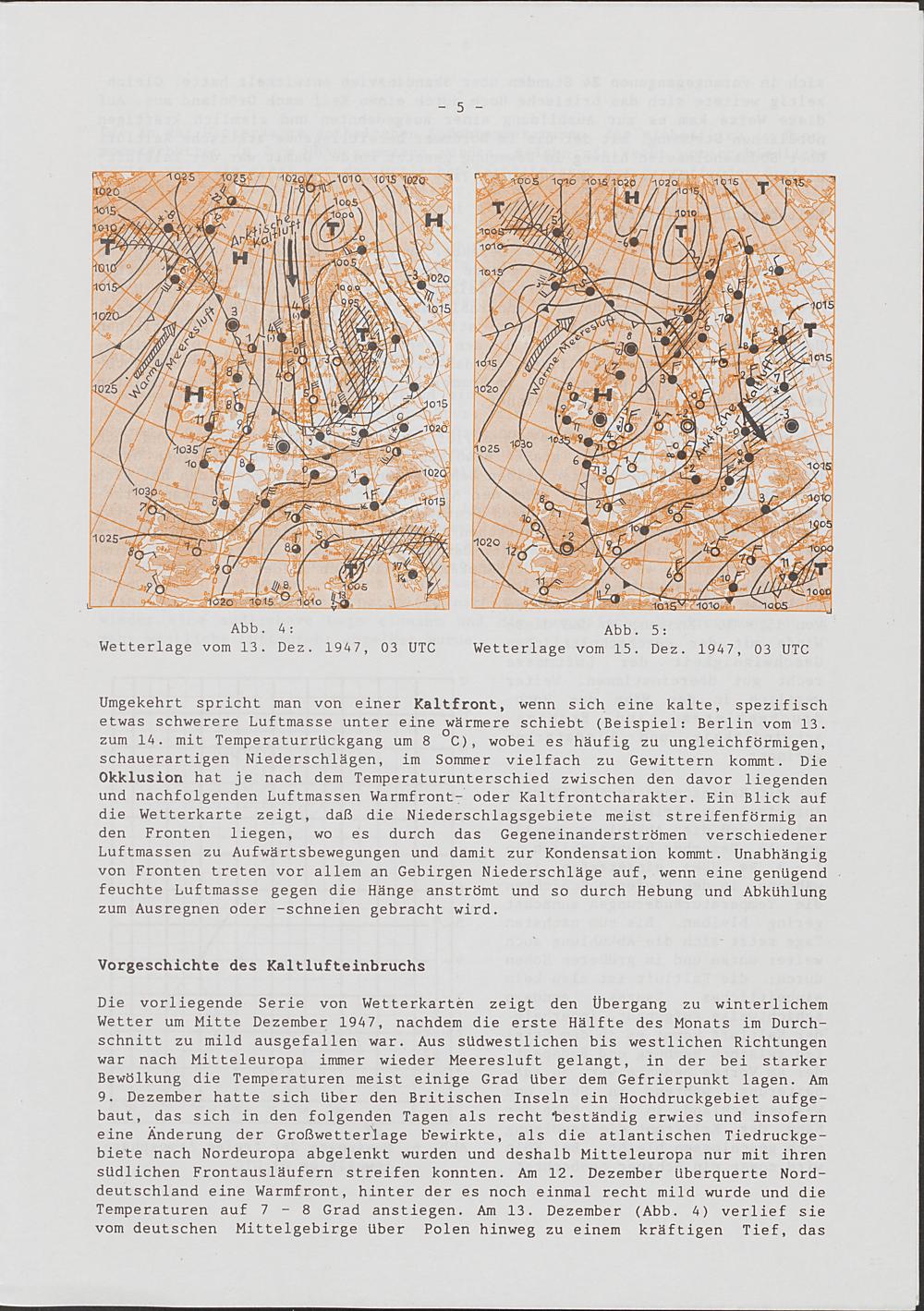 Übungswetterkarte Nr. 1: winterlicher Kaltlufteinbruch : Wetterlage vom 14. Dezember 1947 mit Erläuterungen