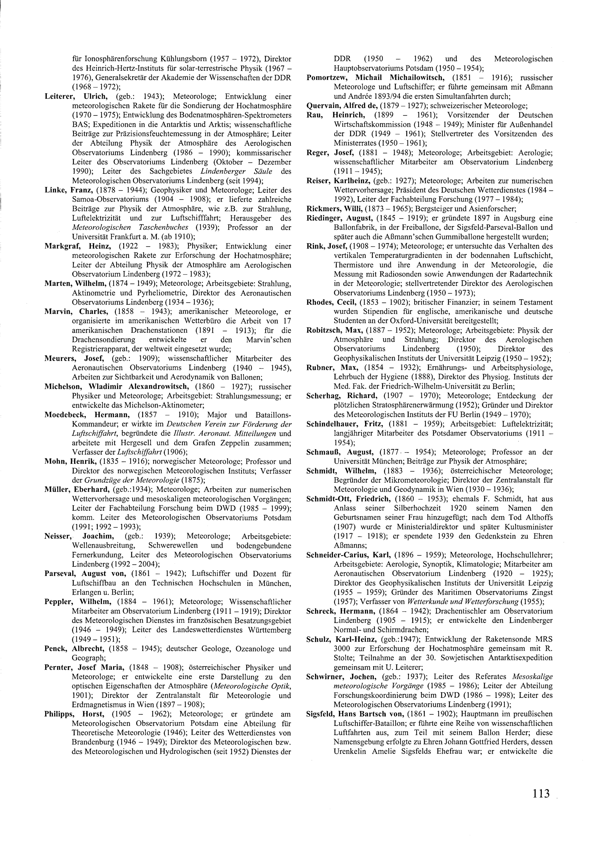 Biografien der Leiter des Meteorologischen Observatoriums Lindenberg von 1905 bis...