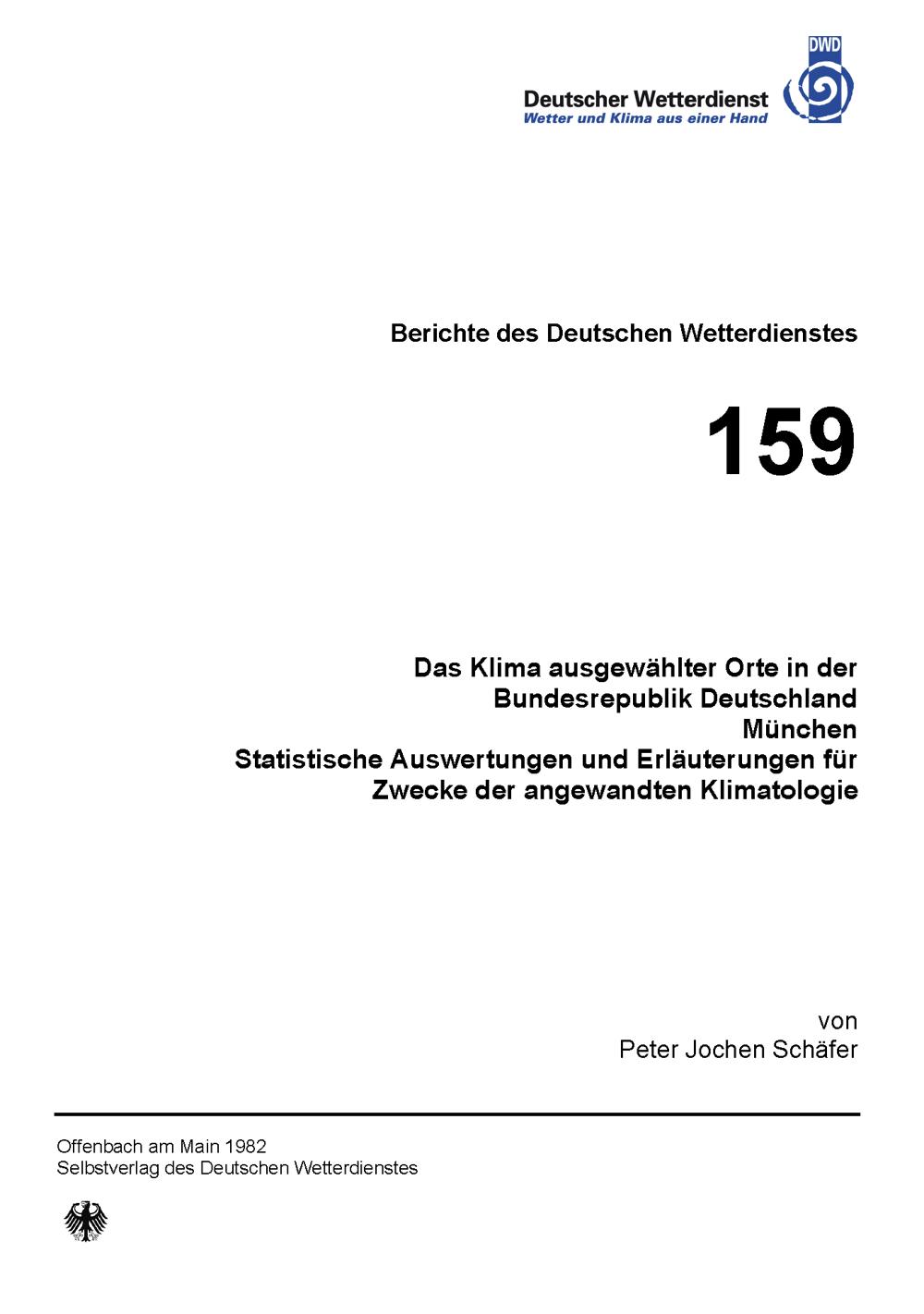 Das Klima ausgewählter Orte der Bundesrepublik Deutschland : München ; statist. Auswertungen u. Erl. für Zwecke d. angewandten Klimatologie ; 186 Tab. / von Peter Jochen Schäfer