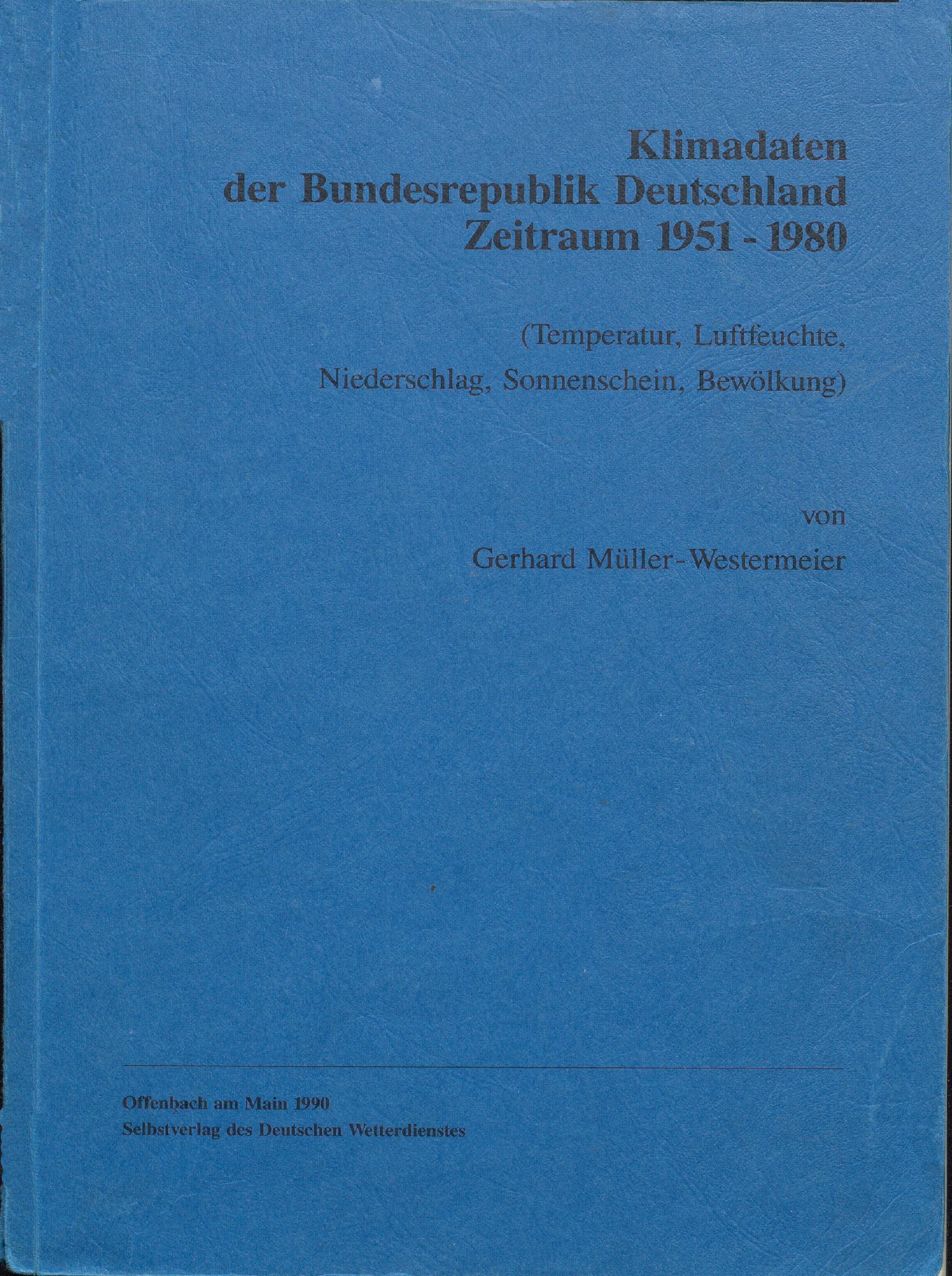 Klimadaten der Bundesrepublik Deutschland Zeitraum 1951 - 1980 : (Temperatur, Luftfeuchte, Niederschlag, Sonnenschein, Bewölkung) ; (mit 289 Tabellen) / von Gerhard Müller-Westermeier