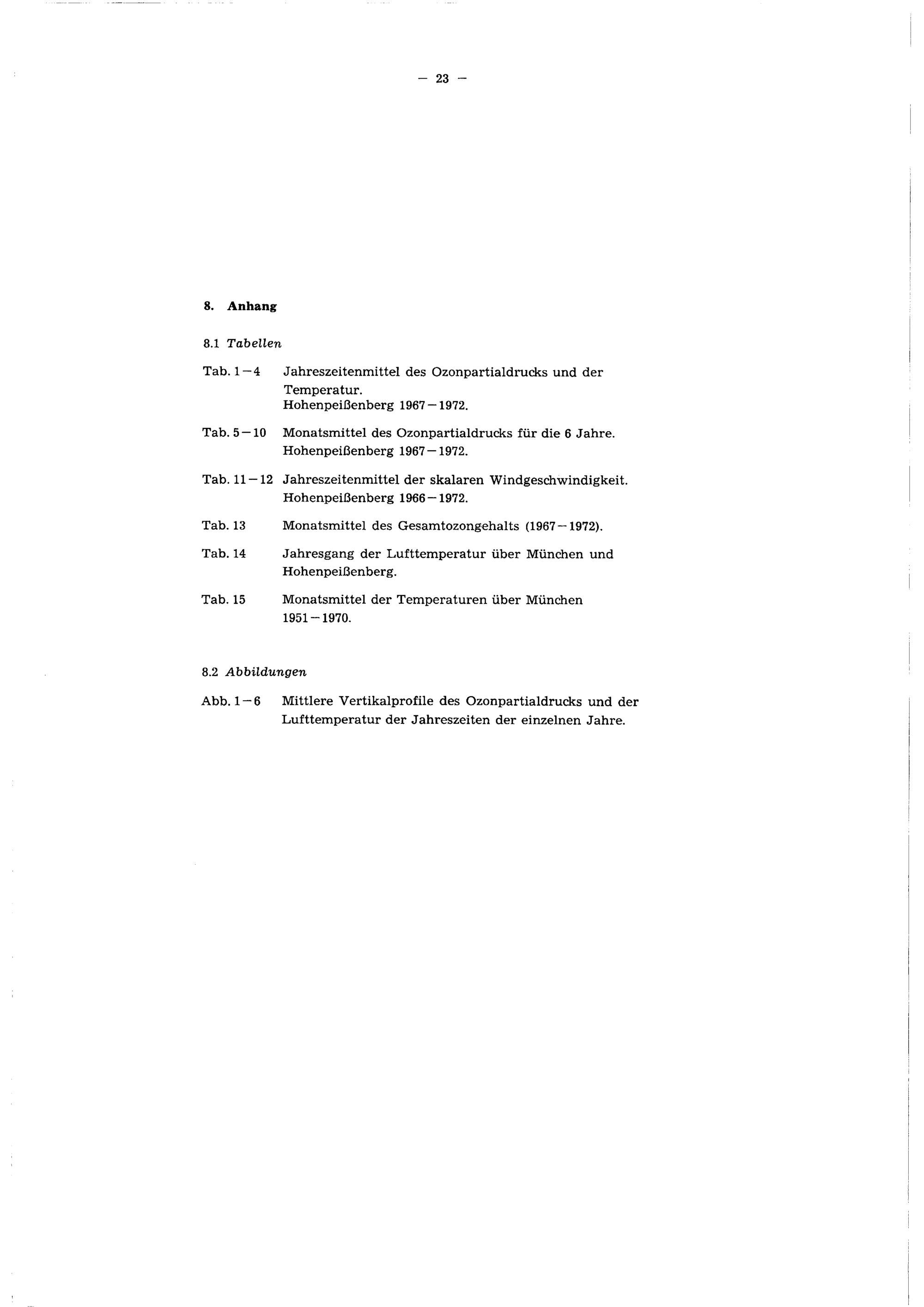 6 Jahre (1967 - 1972) Ozonsondierungen am Meteorologischen Observatorium Hohenpeißenberg : (ein Beitrag zur Klimatologie der freien Atmosphäre) ; (mit 8 Tabellen im Text u. 15 Tabellen im Anhang) / von Walter Attmannspacher und Reinhold Hartmannsgruber