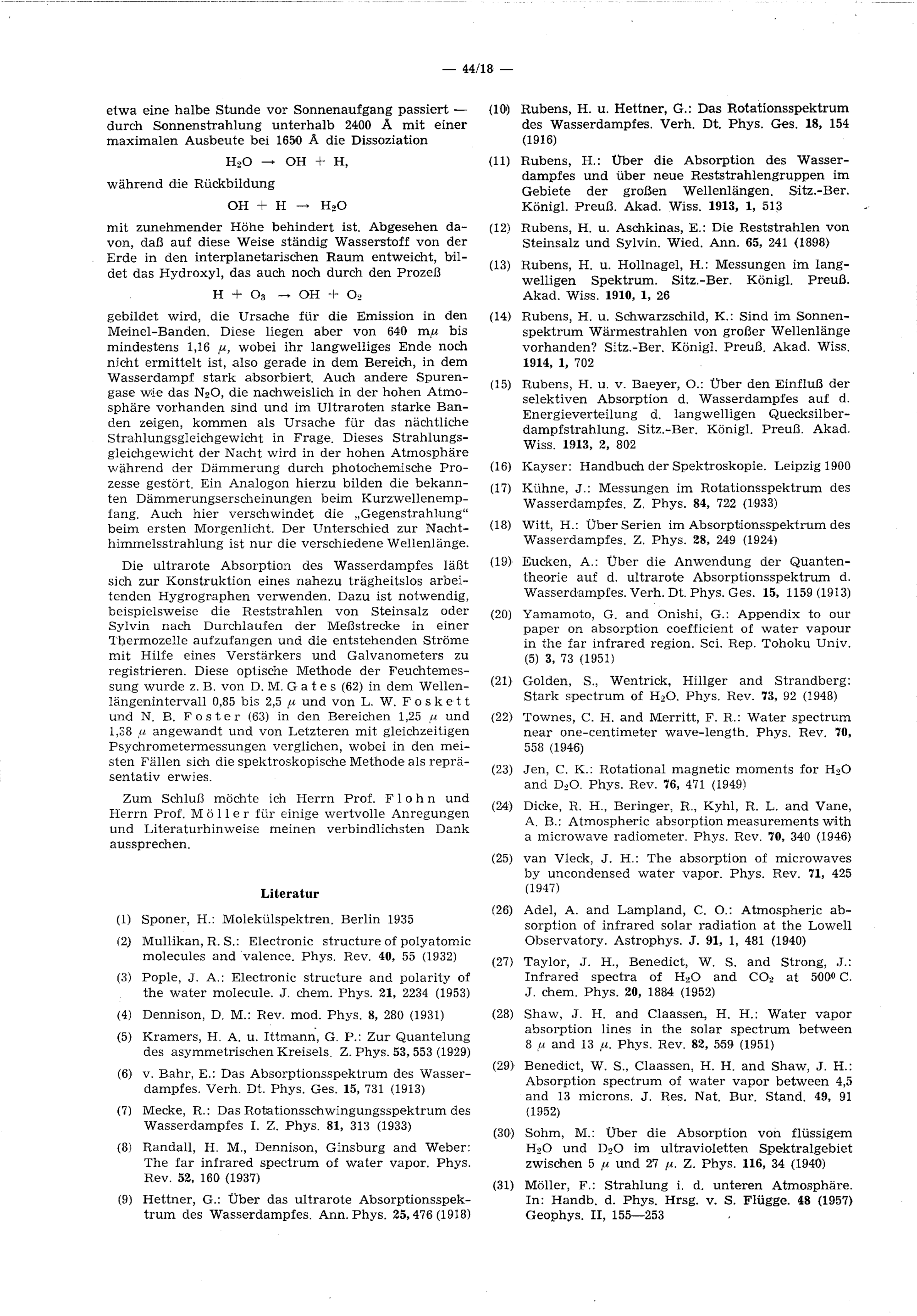Das Spektrum des Wasserdampfes : (mit 8 Tabellen im Text) / von Walter Regula