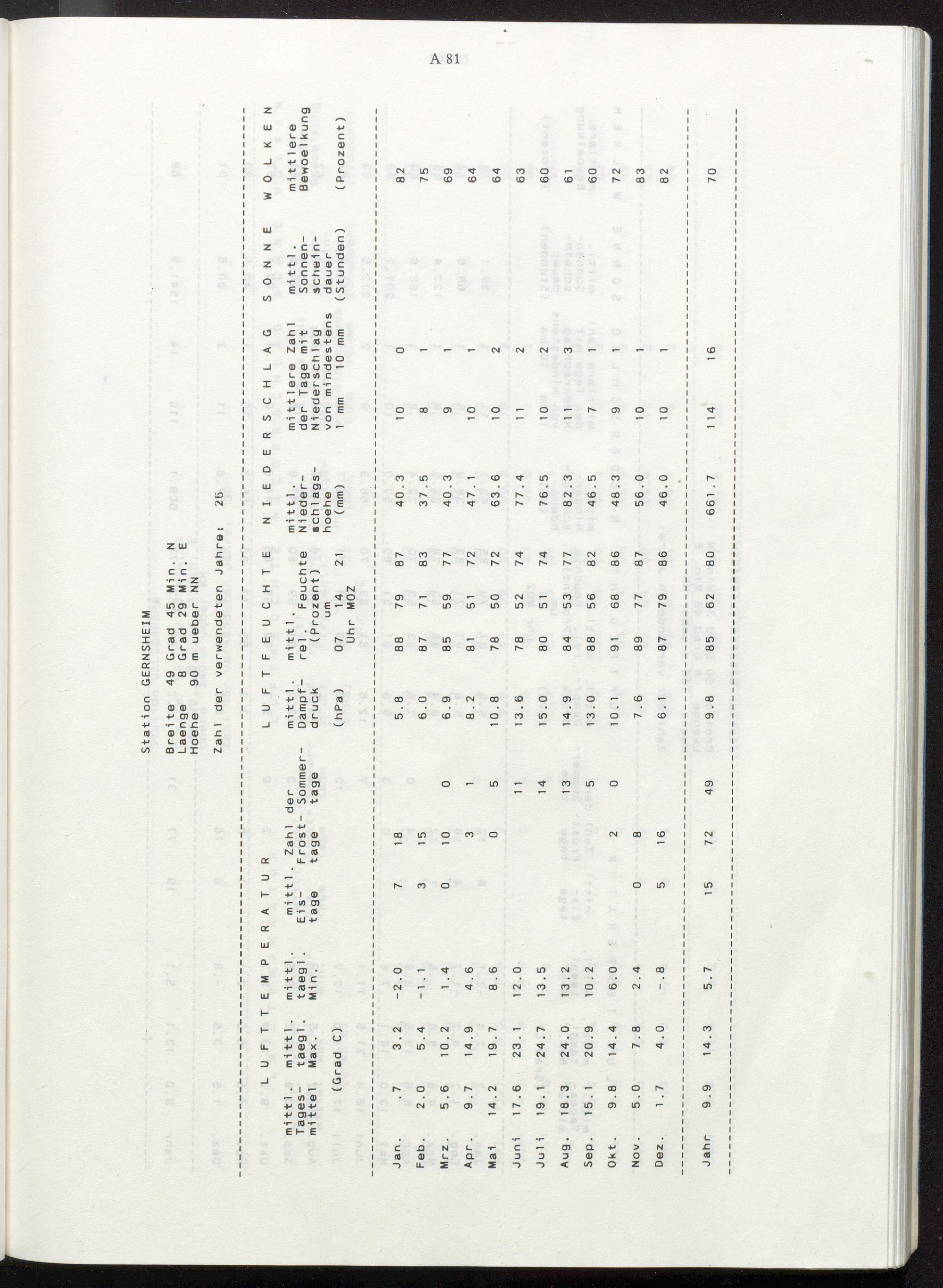 Klimadaten der Bundesrepublik Deutschland Zeitraum 1951 - 1980 : (Temperatur, Luftfeuchte, Niederschlag, Sonnenschein, Bewölkung) ; (mit 289 Tabellen) / von Gerhard Müller-Westermeier