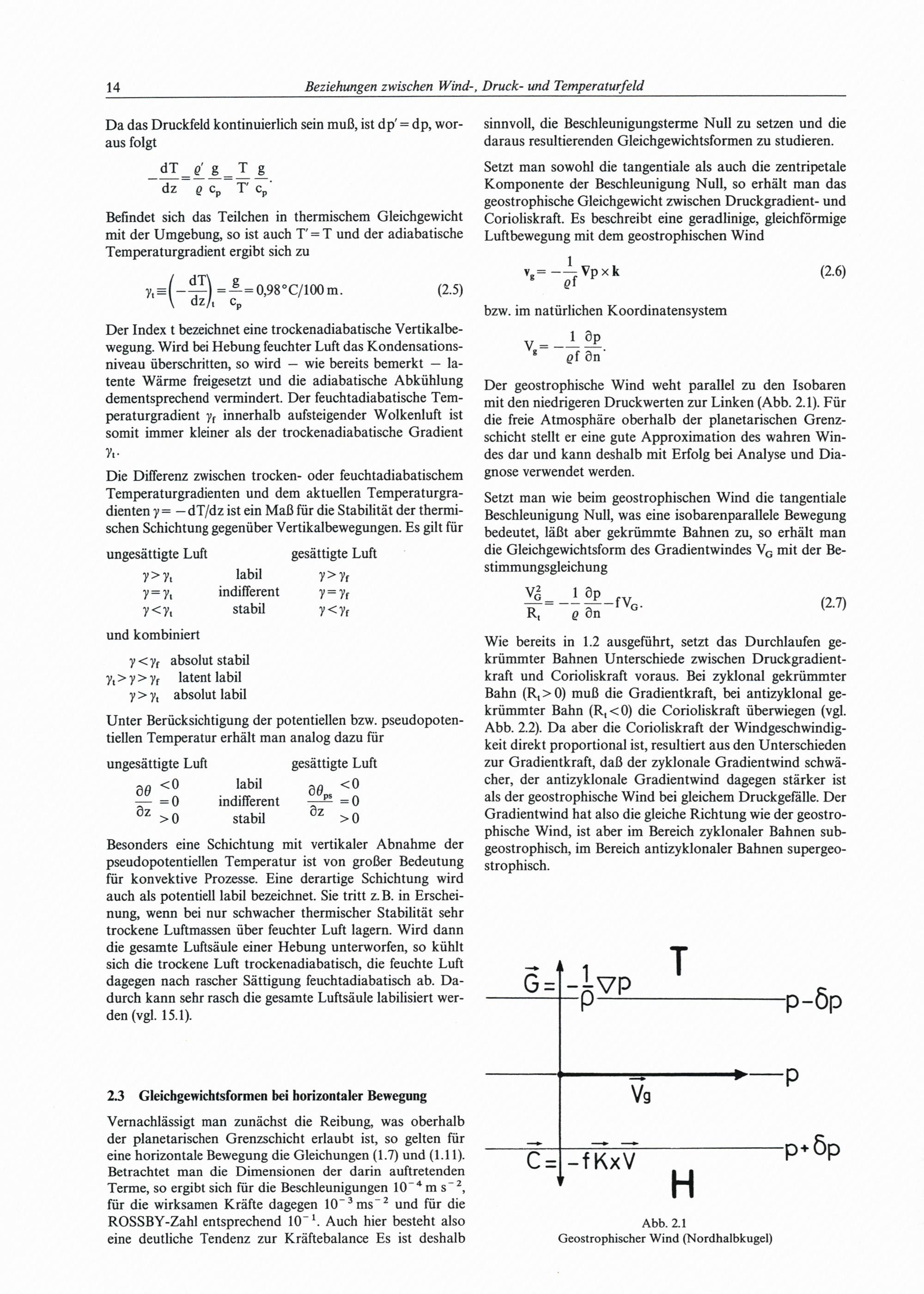 2 Beziehungen zwischen Wind-, Druck- und Temperaturfeld