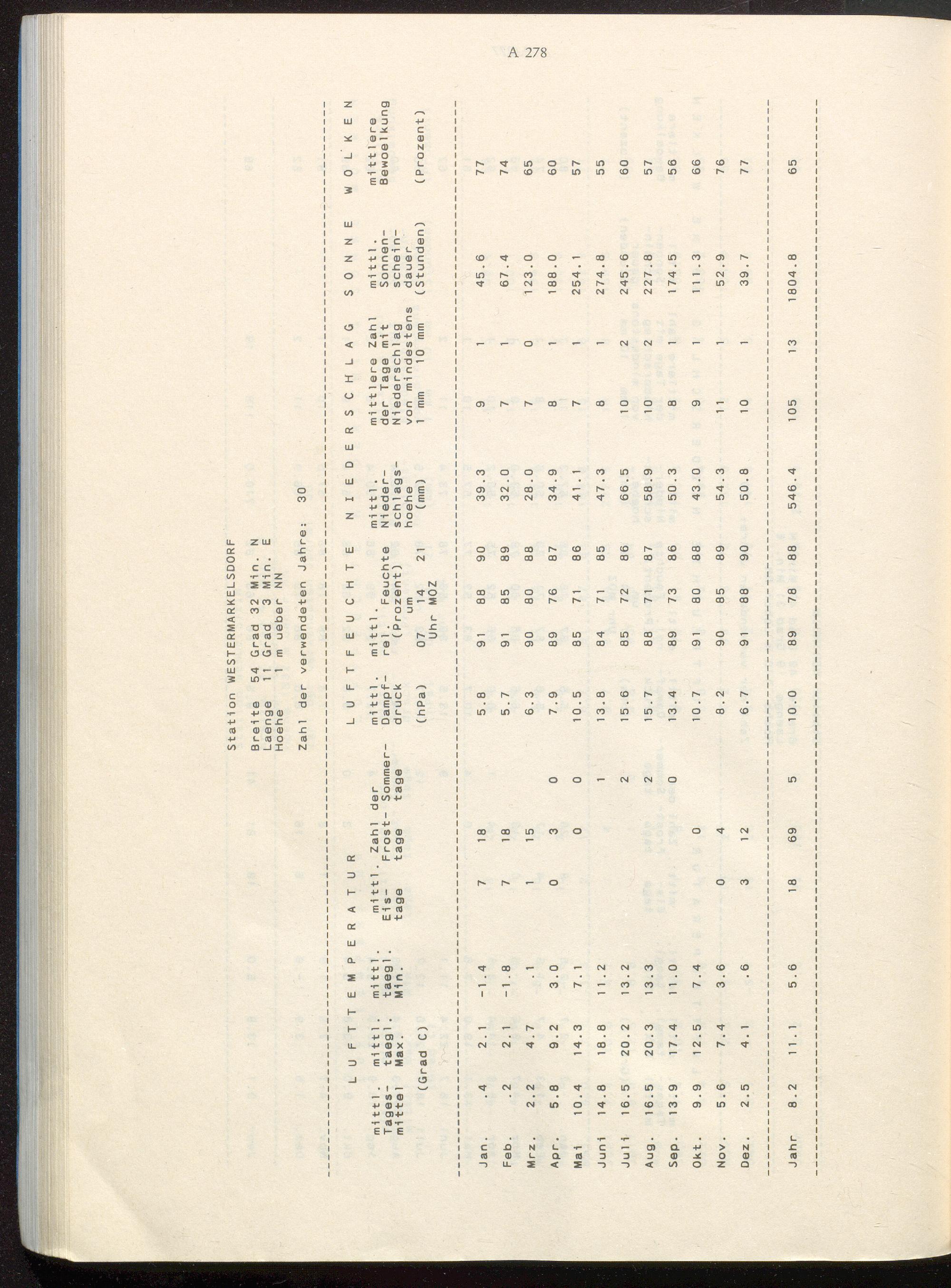 Klimadaten der Bundesrepublik Deutschland Zeitraum 1951 - 1980 : (Temperatur, Luftfeuchte, Niederschlag, Sonnenschein, Bewölkung) ; (mit 289 Tabellen) / von Gerhard Müller-Westermeier
