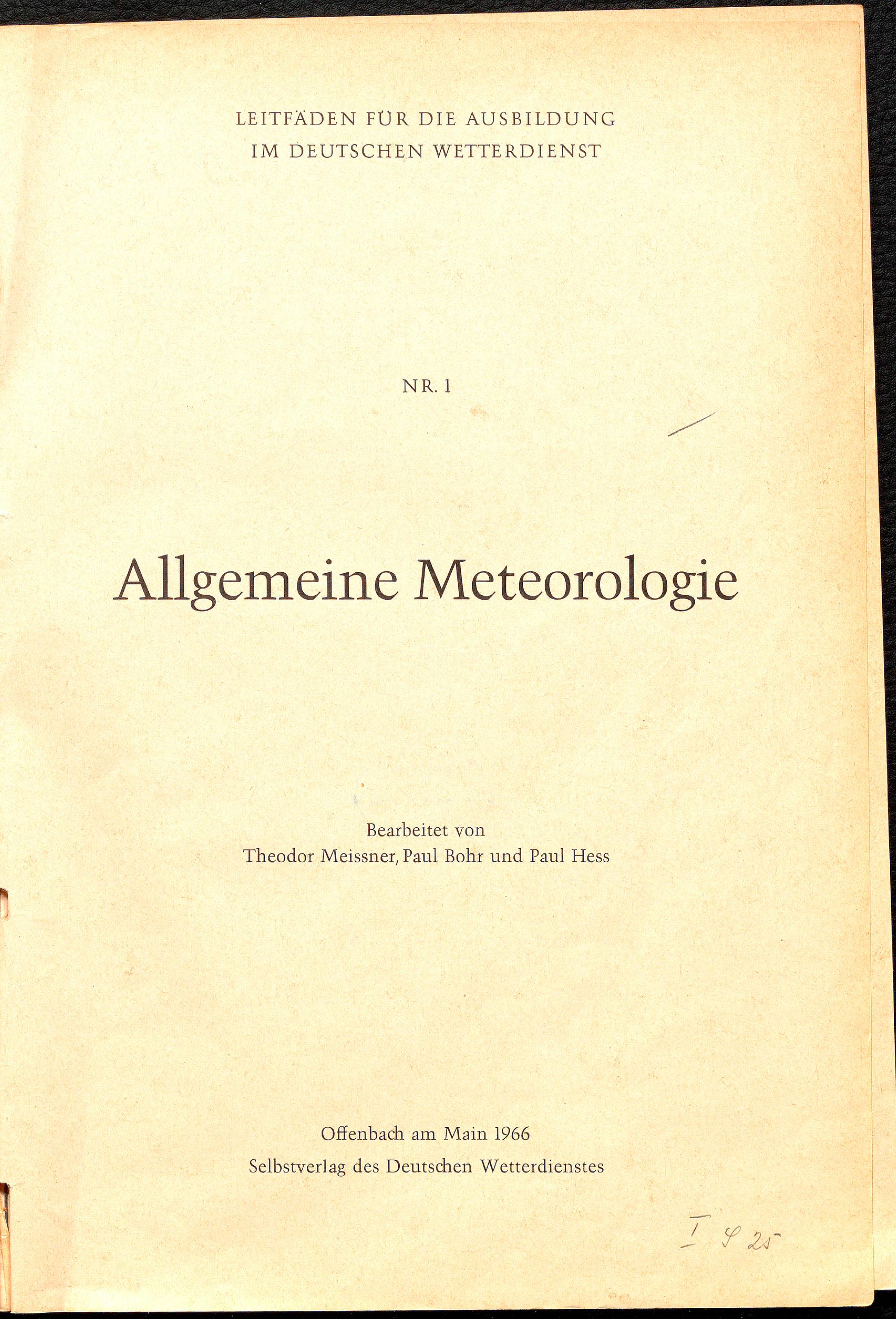 Allgemeine Meteorologie / Theodor Meissner ; ...